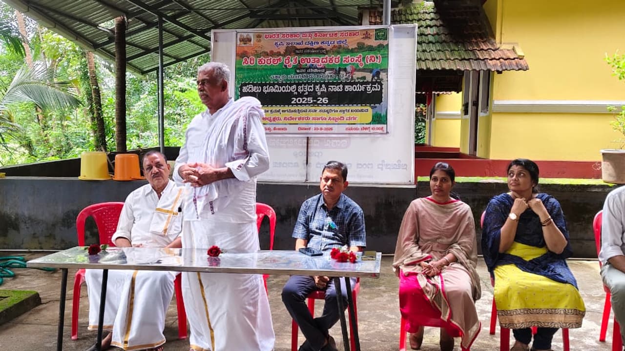 ಮೂಲ್ಕಿ: ಎಕ್ಕಾರಿನ ಸಿರಿಕುರಲ್ ರೈತ ಉತ್ಪಾದಕರ ಸಂಸ್ಥೆ ವತಿಯಿಂದ ಕೆಂಜಾರು ಗ್ರಾಮದ ತಿದ್ಯಾ ಕಂಬಳ ಗುತ್ತಿನವರ ಹಡಿಲು ಭೂಮಿಯಲ್ಲಿ ಭತ್ತ ಕೃಷಿ ನಾಟಿ ಕಾರ್ಯಕ್ರಮ ನಡೆಯಿತು.ಸಿರಿಕುರಲ್ ರೈತ ಉತ್ಪಾದಕರ ಸಂಸ್ಥೆ ಅಧ್ಯಕ್ಷ ಮುರ ಸದಾಶಿವ ಶೆಟ್ಟಿ ಎಕ್ಕಾರು ಅಧ್ಯಕ್ಷತೆವಹಿಸಿದ್ದರು. ಕೃಷಿ ಇಲಾಖೆಯ ಜಂಟಿ ಕೃಷಿ ನಿರ್ದೇಶಕ ಹೊನ್ನಪ್ಪ ಗೋವಿಂದ ಗೌಡ, ಉಪ ಕೃಷಿ ನಿರ್ದೇಶಕರಾದ ಕುಮುದಾ ಸಿ.ಎನ್., ಸಹಾಯಕ ಕೃಷಿ ನಿರ್ದೇಶಕರಾದ ವೀಣಾ ರೈಯವರು ರೈತ ಉತ್ಪಾದನಾ ಸಂಸ್ಥೆಗಳಿಗೆ ಸರ್ಕಾರ ಹಾಗೂ ಕೃಷಿ ಇಲಾಖೆಯಿಂದ ಲಭ್ಯವಿರುವ ಸವಲತ್ತುಗಳ ಬಗ್ಗೆ ಮಾಹಿತಿ ನೀಡಿದರು. ತಿದ್ಯಾ ಕಂಬಳ ಗುತ್ತಿನ ಗಡಿ ಪ್ರಧಾನ ರಮೇಶ್ ಚೌಟ, ಸಂಸ್ಥೆಯ ನಿರ್ದೇಶಕರಾದ ಪ್ರದೀಪ್ ಕುಮಾರ್ ಸುವರ್ಣ, ಸುರೇಶ್ ಶೆಟ್ಟಿ, ಸುದೀಪ್ ಅಮೀನ್, ಪ್ರವೀಣ್ ಮಾಡ, ತಾರಾನಾಥ ಶೆಟ್ಟಿ, ಸೌಮ್ಯ ರೈ, ಜಯರಾಮ್ ಡಿ. ಶೆಟ್ಟಿ, ಜೀತೇಂದ್ರ ಶೆಟ್ಟಿ, ಮುಖ್ಯ ಕಾರ್ಯನಿರ್ವಾಹಣಾಧಿಕಾರಿ ರೂಪೇಶ್, ತಿದ್ಯಾ ಕಂಬಳ ಗುತ್ತಿನ ನಿತಿನ್ ಶೆಟ್ಟಿ, ಸ್ಥಳೀಯರಾದ ಸದಾನಂದ ರೈ, ದಿನೇಶ್ ಶೆಟ್ಟಿ, ವನಜಾ ಶೆಟ್ಟಿ, ಕೇಶವ ಶೆಟ್ಟಿ, ಸತೀಶ್ ಶೆಟ್ಟಿ ಬೈಲು, ಸುನೇತ್ರ ಶೆಟ್ಟಿ ಮತ್ತು ಅನೇಕ ರೈತ ಸದಸ್ಯರು ಉಪಸ್ಥಿತರಿದ್ದರು.ಕೃಷಿಯ ಪ್ರಾತ್ಯಕ್ಷಿಕೆ ವೀಕ್ಷಿಸಲು ಕೆಂಜಾರು ದಕ್ಷಿಣ ಕನ್ನಡ ಜಿಲ್ಲಾ ಪಂಚಾಯಿತಿ ಕಿರಿಯ ಪ್ರಾಥಮಿಕ ಶಾಲೆಯ ಮಕ್ಕಳು, ಶಿಕ್ಷಕರು, ವಿದ್ಯಾರ್ಥಿಗಳು, ಹಳೆಯ ವಿದ್ಯಾರ್ಥಿ ಸಂಘದ ಅಧ್ಯಕ್ಷ ಸತೀಶ್ ದೇವಾಡಿಗ ಮರವೂರು ಭಾಗವಹಿಸಿದ್ದರು.
