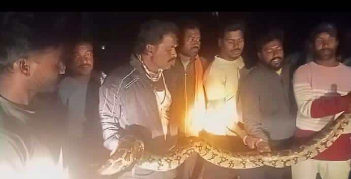 ಹಲಗೂರು ಹೋಬಳಿಯ ನಂಜಾಪುರ ಗ್ರಾಮದ ಮಹದೇವು ಅವರ ಜಮೀನಿನಲ್ಲಿ ಬುಧವಾರ ರಾತ್ರಿ ಸುಮಾರು 8 ಅಡಿ ಉದ್ದ, 30 ಕೆಜಿ ತೂಕದ ಹೆಬ್ಬಾವು ಪತ್ತೆಯಾಗಿದೆ.
