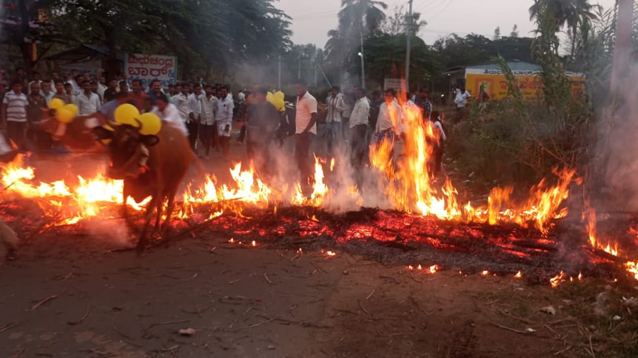ಯುವ ಮುಖಂಡ ಎಚ್.ಎಂ.ಶಿವಮಾದೇಗೌಡ ಮಾತನಾಡಿ, ವರ್ಷಕ್ಕೊಮ್ಮೆ ಬರುವ ಸಂಕ್ರಾಂತಿ ಹಬ್ಬದಲ್ಲಿ ಅವುಗಳನ್ನು ಶುಚಿಗೊಳಿಸಿ ಬಣ್ಣ ಹಾಗೂ ಹೂವಿನಿಂದ ಅಲಂಕರಿಸಿ ನಂತರ ಭೀಮ ನದಿಯ ತೀರದಲ್ಲಿ ವಿಶೇಷವಾಗಿ ಪೂಜೆ ಸಲ್ಲಿಸಿ ನಂತರ ಕಿಚ್ಚಾಯಿಸಲಾಯಿತು ಎಂದರು.ಈ ವೇಳೆ ಎಚ್.ಎಂ. ನಾಗೇಶ, ನಾಗೇಂದ್ರ, ಮೊಘಣ್ಣ, ಮರಿಮಾದು, ಪೂಜಾರಿ,ಸಿದ್ದು, ಆನಂದ, ಸಂತೋಷ, ಶಿವಸ್ವಾಮಿ, ದಿಲೀಪ್ ಸೇರಿದಂತೆ ಇತರರು ಇದ್ದರು.ಸಂಕ್ರಾಂತಿ ಅಂಗವಾಗಿ ರಂಗೋಲಿ ಸ್ಪರ್ಧೆ