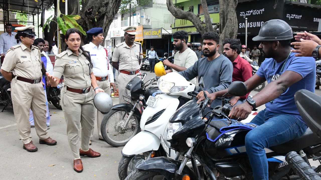 ಹಾಫ್ ಹೆಲ್ಮೆಟ್ ಧರಿಸುವುದು ಕಾನೂನು ಪ್ರಕಾರ ತಪ್ಪು. ಹಾಫ್ ಹೆಲ್ಮೆಟ್ ಧರಿಸುವುದು ಪುನಃ ಹೆಚ್ಚುತ್ತಿದೆ. ಈ ಹಿನ್ನೆಲೆಯಲ್ಲಿ ದಂಡ ವಿಧಿಸುವ ಕಾರ್ಯಾಚರಣೆ ಮುಂದುವರಿಸಲಾಗಿದೆ. ಹಾಫ್ ಹೆಲ್ಮೆಟ್ ಧರಿಸಿದ್ದಾಗ ಆಕಸ್ಮಾತ್ ಯಾವುದೇ ಅವಘಡ ಸಂಭವಿಸಿದರೆ ತೊಂದರೆ ಅನುಭವಿಸಬೇಕಾಗುತ್ತದೆ. ಇದು ದಂಡ ಕಟ್ಟುವುದಕ್ಕಿಂತ ಮುಖ್ಯವಾಗಿ ಜನರ ಜೀವದ ಪ್ರಶ್ನೆ ಎಂದು ಹೆಲ್ಮೆಟ್ ಧರಿಸದವರಿಗೆ, ಹಾಫ್ ಹೆಲ್ಮೆಟ್ ಧರಿಸಿದವರಿಗೆ ಸೂಚ್ಯವಾಗಿ ಎಚ್ಚರಿಸಿದರು.ಅದೇ ವೇಳೆ ಪತ್ನಿ ಜೊತೆಗೆ ತೆರಳುತ್ತಿದ್ದ ದ್ವಿಚಕ್ರ ವಾಹನ ಸವಾರನ ಹೆಲ್ಮೆಟ್ ತೆಗೆದು, ಪತ್ನಿಯಾದ ನೀವಾದರೂ ಫುಲ್ ಹೆಲ್ಮೆಟ್ ಹಾಕಲು ನಿಮ್ಮ ಮನೆಯವರಿಗೆ ಹೇಳಬೇಕಲ್ಲವೇ ಮೇಡಂ ಎಂದು ಎಸ್ಪಿ ಮೇಡಂ ಸಲಹೆ ನೀಡಿದ್ದು ಗಮನ ಸೆಳೆಯಿತು.