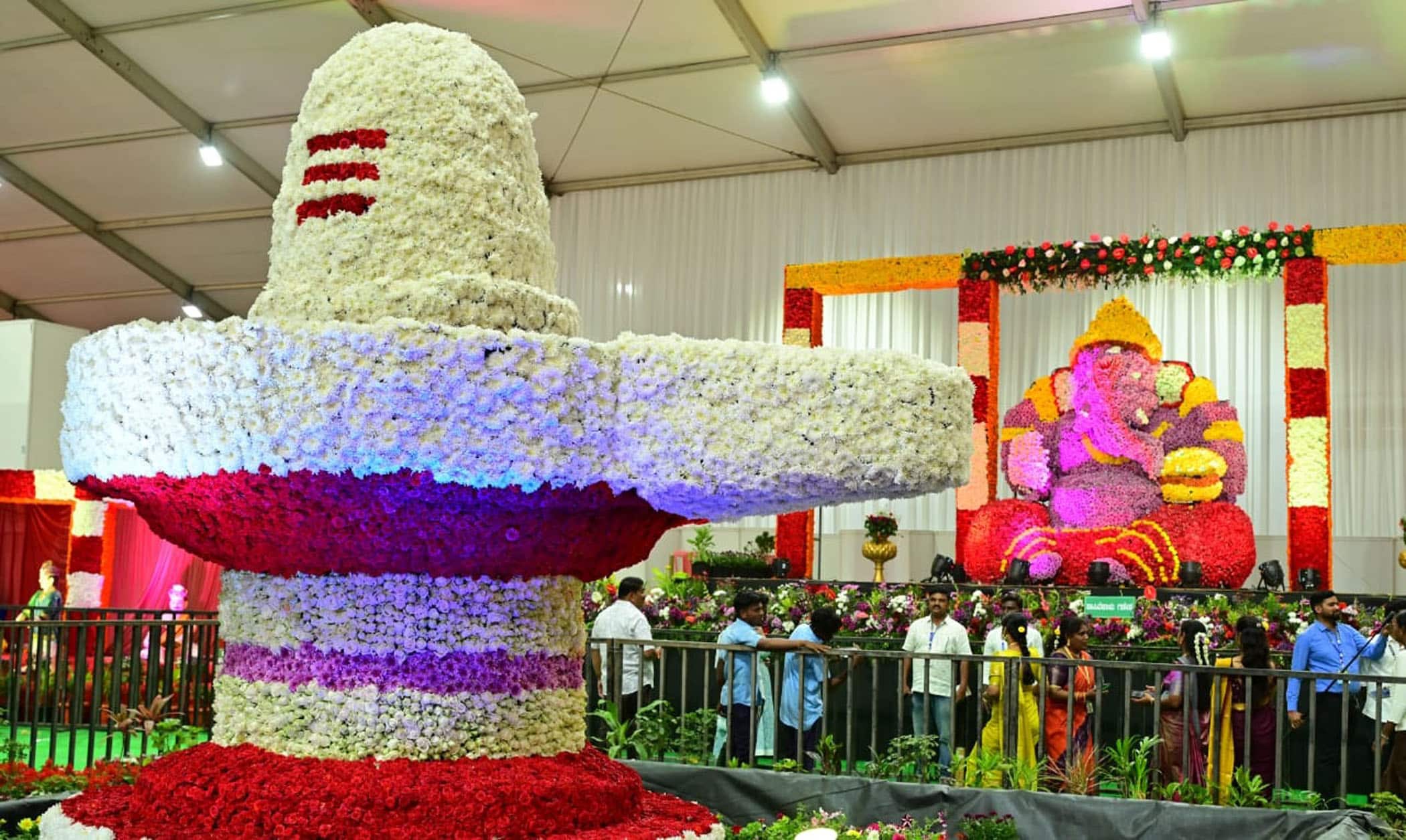 ಭಾನುವಾರ ಇರುವ ಮಹಾಶಿವರಾತ್ರಿ ಅಂಗವಾಗಿ ಶಿವನ ಬೃಹತ್ ಪ್ರತಿಮೆ ಜನರನ್ನು ಆಕರ್ಷಿಸುತ್ತಿತ್ತು. ಒಟ್ಟಿನಲ್ಲಿ 1 ಲಕ್ಷಕ್ಕೂ ಹೆಚ್ಚು ಹೂವುಗಳಿಂದ ವಿವಿಧ ಫಲಪುಷ್ಪ ಪ್ರದರ್ಶನ ಹಂಪಿ ಉತ್ಸವಕ್ಕೆ ಆಗಮಿಸಿದವರಿಗೆ ಮುದ ನೀಡುವುದರಲ್ಲಿ ಸಂಶಯವಿಲ್ಲ.1 ಲಕ್ಷಕ್ಕೂ ಹೆಚ್ಚು ಸೇವಂತಿಗೆ, ಗುಲಾಬಿ, ಬಳಕು, ಜಬೇರ, ಆರ್ಕಿಡ್ಸ್, ಬ್ಲಾಡಿಯಲೋಸ್, ಆ್ಯಂಪೋರಿಯಂ ಮುಂತಾದ ಹೂವುಗಳಿಂದ ಫಲಪುಷ್ಪ ಪ್ರದರ್ಶನ ಹಾಗೂ ವಿಜಯ ನಗರ ಜಿಲ್ಲೆಯಲ್ಲಿ ಬೆಳೆಯುವ ವಿವಿಧ ಬೆಳಗಳ ವೈವಿಧ್ಯತೆ ಪ್ರದರ್ಶನ ಈ ಬಾರಿಯ ವಿಶೇಷವಾಗಿದೆ ಎನ್ನುತ್ತಾರೆ ಜಂಟಿ ಕೃಷಿ ನಿರ್ದೇಶಕ ಎಚ್.ಎಸ್. ಪ್ರಭುರಾಜ.