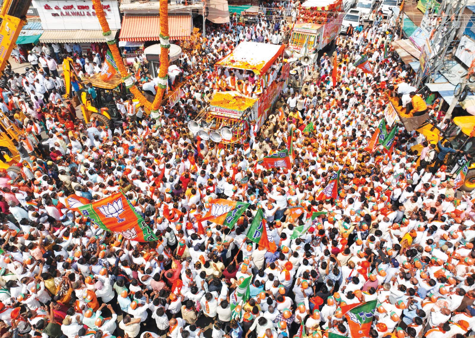 ಇನ್ನೊಂದೆಡೆ ಹಳೇ ಬಾಗಲಕೋಟೆಯ ಕಣವಿ ವೀರಭದ್ರೇಶ್ವರ ದೇವಸ್ಥಾನದಿಂದ ಆರಂಭವಾದ ಬಿಜೆಪಿ ಅಭ್ಯರ್ಥಿಯ ಶಕ್ತಿ ಪ್ರದರ್ಶನದ ಮೆರವಣಿಗೆ ನಗರದ ಪ್ರಮುಖ ಬೀದಿಗಳಲ್ಲಿ ಸಂಚರಿಸಿತು. ನಂತರ ವಲ್ಲಭಬಾಯಿ ಸರ್ಕಲ್ ಮೂಲಕ ಬಸವೇಶ್ವರ ವೃತ್ತಕ್ಕೆ ಆಗಮಿಸಿ ಸಭೆಯಾಗಿ ಮಾರ್ಪಟ್ಟಿತು.ಹಳೇ ಬಾಗಲಕೋಟೆಯಲ್ಲಿ ಬಿಜೆಪಿಯ ಕೇಸರಿ ಶಾಲು, ಬ್ಯಾನರ್ಗಳು ಹಾರಾಡಿದರೆ, ವಿದ್ಯಾಗಿರಿ ನವನಗರದಲ್ಲಿ ಕಾಂಗ್ರೆಸ್ ಧ್ವಜ ಹಾಗೂ ಬ್ಯಾನರ್ಗಳು ಹಾರಾಡಿದವು. ಎರಡು ಪಕ್ಷಗಳು ತಲಾ 5 ಸಾವಿರಕ್ಕೂ ಅಧಿಕ ಕಾರ್ಯಕರ್ತರನ್ನು ಸೇರಿಸುವ ಮೂಲಕ ಚುನಾವಣೆಗೆ ನಾವು ರೆಡಿ ಎಂಬ ಸಂದೇಶ ಸಾರಿದವು.