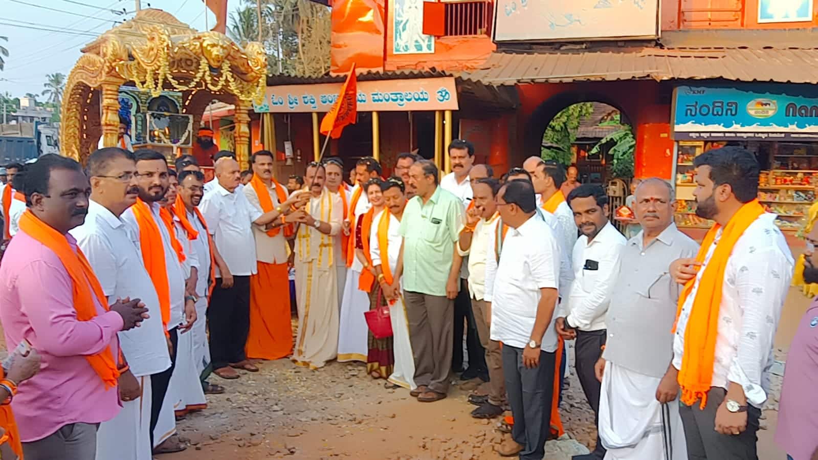 ಪುತ್ತೂರು: ಹನುಮಗಿರಿ ಶ್ರೀ ಕೋದಂಡರಾಮ ಪಂಚಮುಖಿ ಆಂಜನೇಯ ಕ್ಷೇತ್ರದಲ್ಲಿ ಏ.೯ರಿಂದ ೧೨ರ ತನಕ ನಡೆಯಲಿರುವ ಅಷ್ಟಬಂಧ ಬ್ರಹ್ಮಕಲಶೋತ್ಸವದ ಅಂಗವಾಗಿ ಅಯೋಧ್ಯೆಯಿಂದ ಶ್ರೀರಾಮ ಜ್ಯೋತಿ, ಮೂಲ ಮೃತ್ತಿಕೆ, ಪ್ರಯಾಗರಾಜ್ನ ತ್ರಿವೇಣಿ ಸಂಗಮದಿಂದ ಗಂಗಾಜಲ ಪಡೆದು, ಅಂಜನಾದ್ರಿಯಿಂದ ಹನುಮ ಜ್ಯೋತಿ, ಮೃತ್ತಿಕೆ ಹಾಗೂ ಪಂಪಾಸರೋವರದ ಪವಿತ್ರ ಜಲ ಸಂಗ್ರಹಿಸಿಕೊಂಡು ಹೊರಟ ಶ್ರೀರಾಮಹನುಮ ರಾಮರಥವು ಪುತ್ತೂರು ಪುರ ಪ್ರವೇಶ ಮಾಡಿದ ಸಂದರ್ಭ ಭವ್ಯ ಸ್ವಾಗತ ನೀಡಲಾಯಿತು.