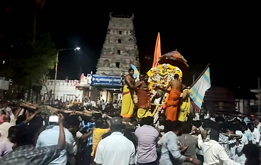 ಸ್ವಾಮಿಯ ಮೂಲ ವಿಗ್ರಹಕ್ಕೆ ಪಂಚಾಮೃತ ಅಭಿಷೇಕ, ಅರ್ಚನೆ, ವಿಶೇಷ ಪೂಜಾ ಕಾರ್ಯಗಳನ್ನು ನೆರವೇರಿಸಲಾಯಿತು, ಯುಗಾದಿ ಹಬ್ಬದ ಪ್ರಯುಕ್ತ ಶ್ರೀ ಉತ್ತಾರಾಧಿಮಠ ಸಮರ್ಪಿಸಿರುವ ವಜ್ರಗಳಿಂದ ನಿರ್ಮಿಸಿರುವ ವಿಶೇಷ ಅಭರಣಗಳಿಂದ ಅಲಂಕರಿಸಿ, ನಿತ್ಯಾರಾಧನೆ, ಬಲಿಪ್ರಧಾನ, ಕೃಷ್ಣಗಂಧೋತ್ಸವ ನಡೆಸಿದ ನಂತರ ಮಹಾಮಂಗಳಾರತಿ ನೆರವೇರಿಸಲಾಯಿತು. ಗೋದುಳಿ ಲಗ್ನದಲ್ಲಿ ಜರಗುವ ಶ್ರೀ ಹನುಮಂತ್ಯುತ್ಸವ ಪ್ರಯುಕ್ತ ವಿವಿಧ ಪುಷ್ಪಗಳಿಂದ ವಿಶೇಷವಾಗಿ ಅಲಂಕರಿಸಿದ್ದ ಶ್ರೀ ಸ್ವಾಮಿಯ ಉತ್ಸವ ಮೂರ್ತಿಗಳನ್ನು ರಥ ಬೀದಿಯಲ್ಲಿ ಉತ್ಸವ ನಡೆಸಿದ ನಂತರ ಶ್ರೀ ಹನುಮಂತನ ಮೂರ್ತಿಯ ಮೇಲೆ ಶ್ರೀ ಸ್ವಾಮಿಯ ಉತ್ಸವ ಮೂರ್ತಿಗಳನ್ನು ಪ್ರತಿಷ್ಠಾಪಿಸಿ ಪೂಜಿಸಲಾಯಿತು. ಕಡ್ಲೆಕಾಯಿಯನ್ನು ದೇವರ ಮೂರ್ತಿಯ ಮೇಲೆ ಎರಚುತ್ತಾ. ಶ್ರೀ ಸ್ವಾಮಿಯ ಅಡ್ಡೆಯನ್ನು ಹೊತ್ತು ನೂರಾರು ಭಕ್ತರು ಹನುಮಂತನ ಮೂರ್ತಿಯನ್ನು ಮೆರೆಸುತ್ತ ರಥಬೀದಿಯಲ್ಲಿ ಸಾಗಿದರು. ಉತ್ಸವದಲ್ಲಿ ಭಾಗಿಯಾಗಿದ್ದ ಸಾವಿರಾರು ಭಕ್ತರು ಕಡ್ಲೆಕಾಯಿಯನ್ನು ಪ್ರಸಾದ ರೂಪದಲ್ಲಿ ಸ್ವೀಕರಿಸಿದರು.ಎಸ್ಎಲ್ಎನ್ಸಿ ಸಂಘದ ಯುವಕರು ಪೂಜಾ ಮಹೋತ್ಸವವನ್ನು ಆಚರಿಸಿಕೊಂಡು ಬರುತ್ತಿದ್ದು, ಪುರಸಭೆ ಮಾಜಿ ಸದಸ್ಯ ಎಚ್. ಕೆ. ಗಂಗಾಧರ್ (ಕ್ಯಾಪ್ಟನ್ ಗಂಗಾಧರ್), ಪುರಸಭೆ ಮಾಜಿ ಅಧ್ಯಕ್ಷ ಎಚ್. ಕೆ. ಪ್ರಸನ್ನ, ಪತ್ರಕರ್ತರ ಸಂಘದ ಅಧ್ಯಕ್ಷ ವೆಂಕಟೇಶ್, ಚಲುವರಾಜು, ಪ್ರವೀಣ್, ರಾಘವೇಂದ್ರ, ರಾಜು, ಚಲುವ, ಗುರು, ಮಹೇಶ್, ಸುಬ್ಬು, ಬಾಬು, ರಾಜೇಶ್, ಸುನೀಲ್, ಮಧು, ಅಭಿ, ಸೇರಿದಂತೆ ಸಾವಿರಾರು ಭಕ್ತರು ಹನುಂಮಂತ್ಯತ್ಸುವದಲ್ಲಿ ಭಾಗಿಗಳಾಗಿ ಸಂಭ್ರಮಿಸಿದರು.