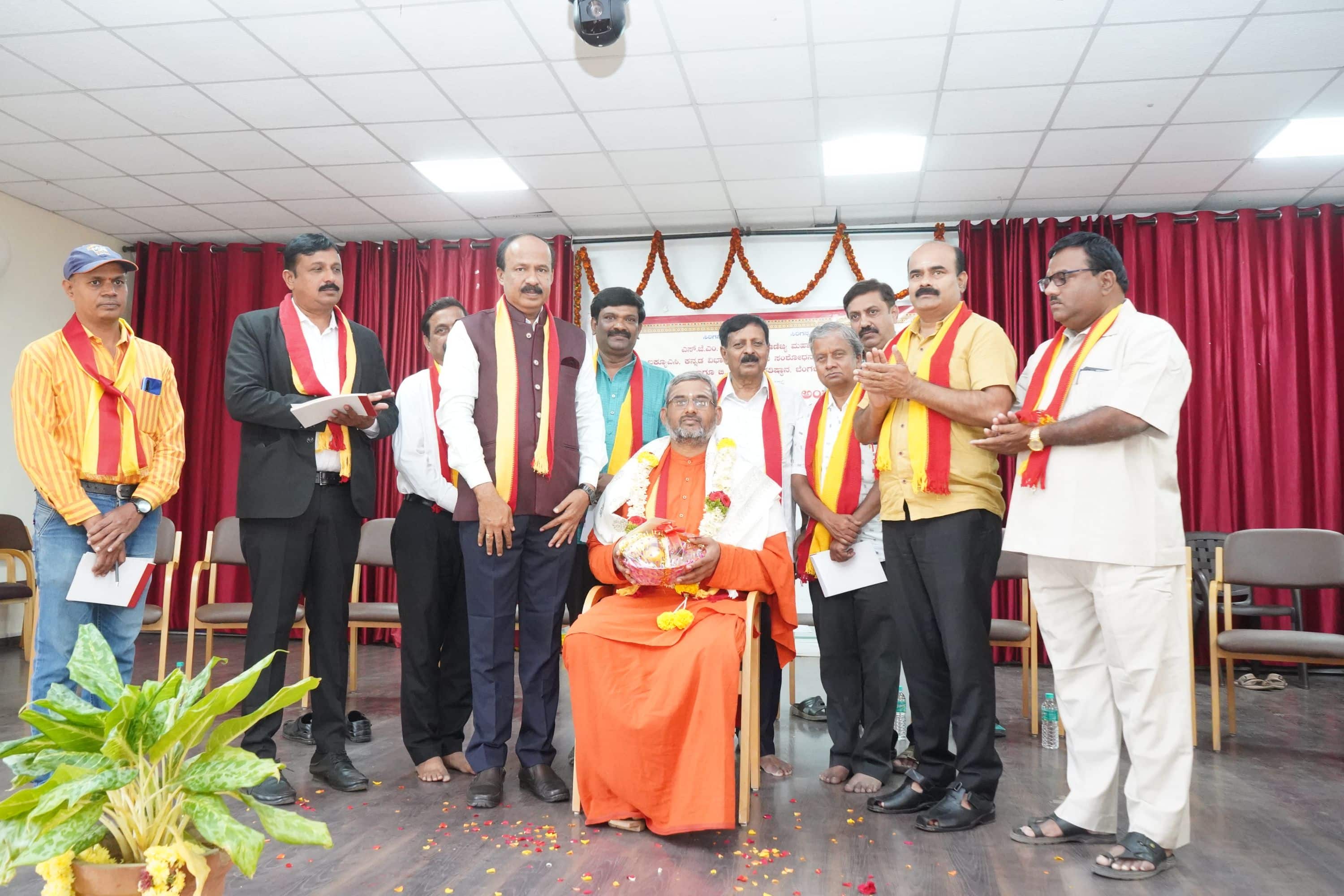 ಕುವೆಂಪುರವರು ರಾಷ್ಟ್ರಕವಿಗಳಾಗಿದ್ದಾರೆ. ಅವರ ಬರವಣಿಗೆ ನೋಡಿದರೆ ದುಂಡಾಗಿಲ್ಲ. ಆದರೆ ಅದರಲ್ಲಿ ಆಂತರಿಕ ಸಾಹಿತ್ಯವಿದೆ. ಕಾವ್ಯಗಳನ್ನು ಓದುವಾಗ ಅಂತರ್ಮುಖಿಗಳಾದರೆ ಅದರಿಂದ ಸುಖ ಸಂತೋಷ ಸಿಗುತ್ತದೆ. ಎಲ್ಲರೂ ಸಾಹಿತ್ಯದ ಅಭಿರುಚಿಯನ್ನು ಹೊಂದಬೇಕು. ನಮ್ಮ ಬದುಕಿನ ನಡವಳಿಕೆಗಳು ನಮ್ಮ ಸಂತೃಪ್ತಿಗಾಗಿ ಇರುತ್ತವೆ. ವಿದ್ಯಾರ್ಥಿಗಳು ಹಳೆಗನ್ನಡದ ಕವನಗಳನ್ನು ಓದಿದರೆ ಅವು ಬದುಕಿನ ಮೇಲೆ ಪ್ರಭಾವ ಬೀರುತ್ತವೆ. ಕನ್ನಡ ಸಾಹಿತ್ಯಕ್ಕೆ ಜೈನ ಕವಿಗಳು ಕೊಡುಗೆ ನೀಡಿದ್ದಾರೆ. ಸಂಕಲ್ಪದಲ್ಲೂ ಹಿಂಸೆ ಮಾಡಬಾರದು ಎನ್ನುವ ವಿಚಾರಗಳನ್ನು ತಮ್ಮ ಗ್ರಂಥಗಳ ಮೂಲಕ ತಿಳಿಸಿದ್ದಾರೆ. ಶ್ರೀಮಠದ ಎಲ್ಲ ಪತ್ರಿಕೆ ಗ್ರಂಥಗಳನ್ನು ವ್ಯಾಕರಣ ದೋಷವಿಲ್ಲದೆ ರಚಿಸಿರುವ ಡಾ.ಬೈರಮಂಗಲ ರಾಮೇಗೌಡ ಮತ್ತು ಪ್ರೊ.ಚಂದ್ರಶೇಖರ್, ಡಾ.ಶಾಂತರಾಜು, ಡಾ.ಶಿವಕುಮಾರ್ ಇವರ ನುಡಿಗಳನ್ನು ಆಲಿಸಿ ಜೀವನದಲ್ಲಿ ಅಳವಡಿಸಿಕೊಳ್ಳಿ ಎಂದರು.ಕಸಾಪ ಅಧ್ಯಕ್ಷ ಕೆ.ಎಂ.ಶಿವಸ್ವಾಮಿ ಮಾತನಾಡಿ, ಕನ್ನಡ ಬಾವುಟವು ಹೊಂದಿರುವ ಹಳದಿ ಮತ್ತು ಕೆಂಪುಬಣ್ಣವನ್ನು ನೋಡಿದರೆ ರೋಮಾಂಚನ ಉಂಟು ಮಾಡುತ್ತದೆ. ಕನ್ನಡ ಭಾಷೆ ಅತ್ಯಂತ ಶ್ರೇಷ್ಠ ಹಿನ್ನೆಲೆಯನ್ನು ಹೊಂದಿದೆ. ಕನ್ನಡದ ಅಕ್ಷರಗಳ ಬಳಕೆಯಲ್ಲಿ ವ್ಯತ್ಯಾಸವಾದರೆ ಬಾಹ್ಯ ಅರ್ಥವನ್ನು ಕೊಡುತ್ತದೆ. ಸರಿಯಾಗಿ ಪದ ಪ್ರಯೋಗ ಮಾಡಿದರೆ ಅದು ಉತ್ತಮ ಮಾಹಿತಿ ಒದಗಿಸುತ್ತದೆ. ಬಳಕೆ ಜಾಸ್ತಿಯಾದರೆ ಉಪಯೋಗ ಹೆಚ್ಚಾಗುತ್ತದೆ. ಬಳಕೆ ಕಡಿಮೆಯಾದರೆ ಉಪಯೋಗವು ಕಡಿಮೆಯಾಗುತ್ತದೆ ಎಂದರು.