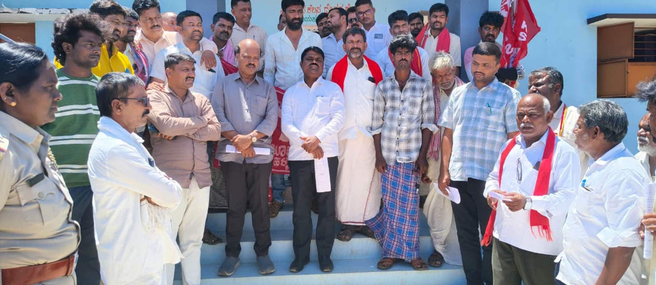 ಪ್ರತಿಭಟನೆಯ ಸುದ್ದಿ ತಿಳಿದು ಸ್ಥಳಕ್ಕೆ ಹರಪನಹಳ್ಳಿ ತಹಸೀಲ್ದಾರ್ ಗುರು ಬಸವರಾಜ ಭೇಟಿ ನೀಡಿ ರೈತರ ಮನವಿ ಸ್ವೀಕರಿಸಿದರು.