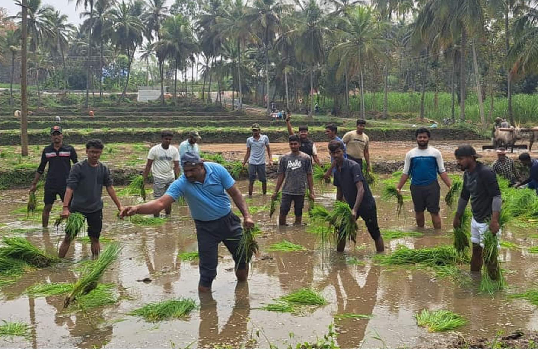ತಾಲೂಕಿನ ಚಿನ್ನಾಯಕನಹಳ್ಳಿಯಲ್ಲಿ ನಡೆಯುತ್ತಿರುವ ಮೈಸೂರಿನ ಶೇಷಾದ್ರಿಪುರಂ ಇನ್ಸಿಟ್ ಆಫ್ ಟೆಕ್ನಾಲಜಿಯ ಎನ್ಎಸ್ಎಸ್ ವಾರ್ಷಿಕ ವಿಶೇಷ ಶಿಬಿರದ ಅಂಗವಾಗಿ ಮರಳಗಾಲ ಗ್ರಾಮದ ಸುಶೀಲಮ್ಮ ರಾಮೇಗೌಡ ಅವರ ಜಮೀನಿನಲ್ಲಿ ಭತ್ತದ ನಾಟಿ ಮೂಲಕ ಶ್ರಮದಾನ ಮಾಡಿದರು.ನಂತರ ಎನ್ಎಸ್ಎಸ್ ಘಟಕದ ಅಧಿಕಾರಿ ಹಾಗೂ ರಾಷ್ಟ್ರ ಪ್ರಶಸ್ತಿ ಪುರಸ್ಕತ ಡಾ.ರಾಘವೇಂದ್ರ ಮಾತನಾಡಿ, ನಗರ ಪ್ರದೇಶದ ವಿದ್ಯಾರ್ಥಿಗಳಿಗೆ ಭತ್ತ ಹೇಗೆ ಬೆಳೆಯುತ್ತಾರೆ ಎಂಬುದರ ಬಗ್ಗೆ ಅರಿವಿಲ್ಲ. ಅದು ಮರಗಳಿಂದ ಬಿಡುವುದು ಎಂಬ ನಂಬಿಕೆಯಲ್ಲಿದ್ದಾರೆ. ಇಂದು ನಗರ ಪ್ರದೇಶದಲ್ಲಿ ವ್ಯಾಸಂಗ ಮಾಡುತ್ತಿರುವ ವಿದ್ಯಾರ್ಥಿಗಳು ವ್ಯವಸಾಯದ ಭತ್ತ ಬೆಳೆ ಅನುಭವವನ್ನು ಪಡೆಯಲು ಭತ್ತ ನಾಟಿ ಕೆಲಸಗಳಲ್ಲಿ ತಲೀನರಾಗಿದ್ದಾರೆ. ರೈತರ ನಿಜ ಬದುಕನ್ನು ಅರ್ಥೈಸಿಕೊಂಡಿದ್ದಾರೆ ಎಂದರು.