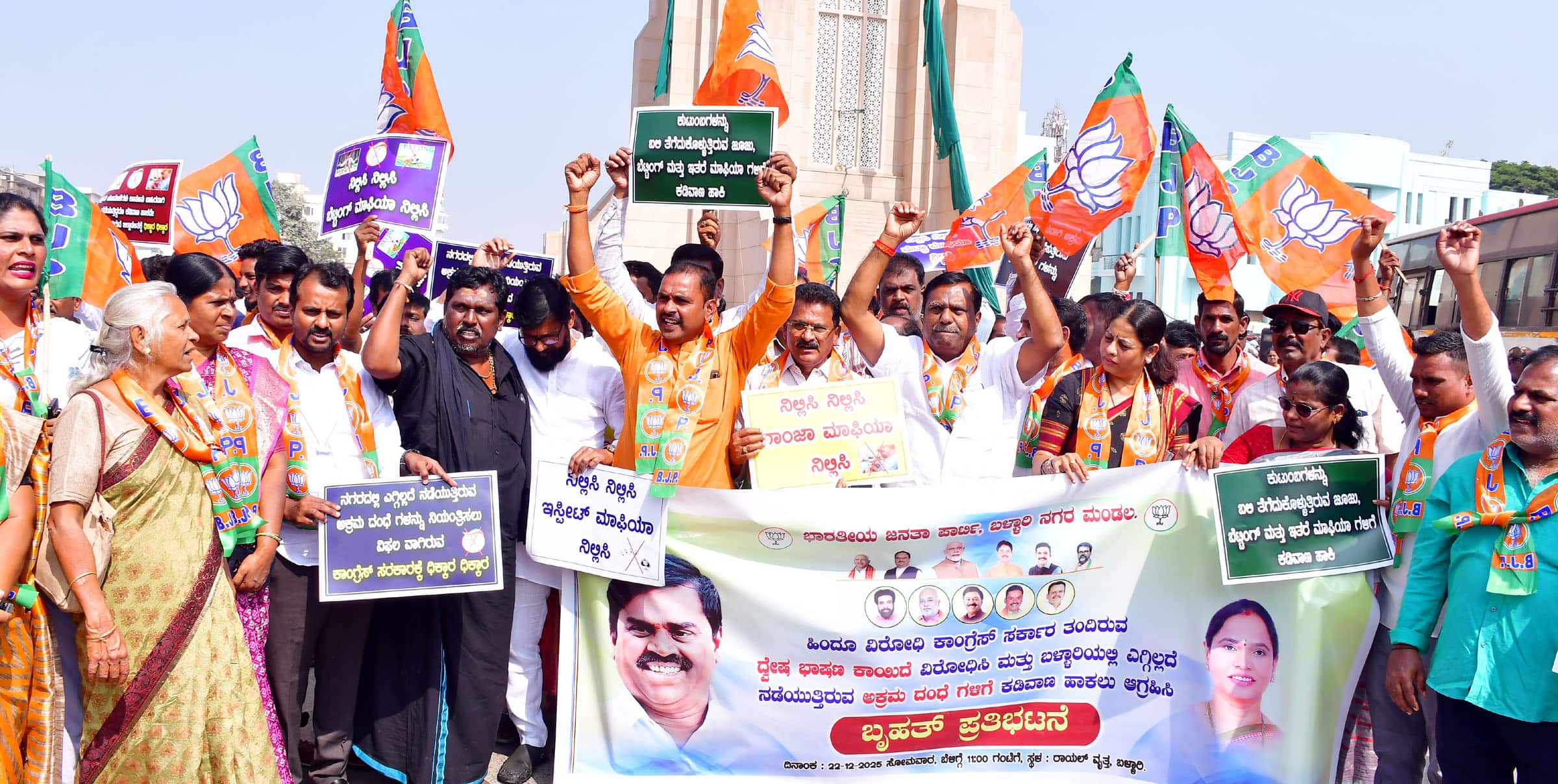 ಒತ್ತಾಯಿಸಿ ಬಿಜೆಪಿಯ ನೂರಾರು ಕಾರ್ಯಕರ್ತರು ಹಾಗೂ ಪಕ್ಷದ ಮುಖಂಡರು ನಗರದಲ್ಲಿ ಪ್ರತಿಭಟನೆ ನಡೆಸಿದರು.ದ್ವೇಷಭಾಷಣ ತಡೆ ಮಸೂದೆಯನ್ನು ಜಾರಿಗೊಳಿಸುವ ಮೂಲಕ ಕಾಂಗ್ರೆಸ್ ಸರ್ಕಾರ ಅಭಿವ್ಯಕ್ತಿ ಸ್ವಾತಂತ್ರ್ಯಕ್ಕೆ ಧಕ್ಕೆ ತಂದಿದೆ. ಇದೊಂದು ಮೊಂಡುತನದ ಪರಮಾವಧಿಯಾಗಿದೆ. ಸರ್ಕಾರದ ಇಂತಹ ನೀತಿಯಿಂದ ಪ್ರತಿಕೂಲ ಪರಿಸ್ಥಿತಿಗಳಲ್ಲಿ ಪ್ರಜಾಪ್ರಭುತ್ವ ಉಳಿಯಲು ಸಾಧ್ಯವಿಲ್ಲದಂತಾಗಲಿದೆ. ಬ್ರಿಟಿಷ್ ಕಾಲದ ವಸಾಹತುಶಾಹಿ ನೀತಿಗಳನ್ನು ಅನುಷ್ಠಾನದ ಮೂಲಕ ಕಾಂಗ್ರೆಸ್ ಸರ್ಕಾರ ಪ್ರತಿಪಕ್ಷಗಳನ್ನು ದಮನ ಮಾಡಲು ಹಾಗೂ ದಬ್ಬಾಳಿಕೆಯ ನೀತಿಗಳನ್ನು ಅನುಸರಿಸಲು ಕಾಯ್ದೆಯನ್ನು ದುರ್ಬಳಕೆ ಮಾಡಿಕೊಳ್ಳುವ ಸಾಧ್ಯತೆಯಿದೆ. ದ್ವೇಷಭಾಷಣ ತಡೆ ಕಾಯ್ದೆ ಸಾರ್ವಜನಿಕ ಹಿತಾಸಕ್ತಿಗೆ ದೊಡ್ಡ ಅಪಾಯವಾಗಿದೆ ಎಂದು ಪ್ರತಿಭಟನಾಕಾರರು ಆರೋಪಿಸಿದರು.