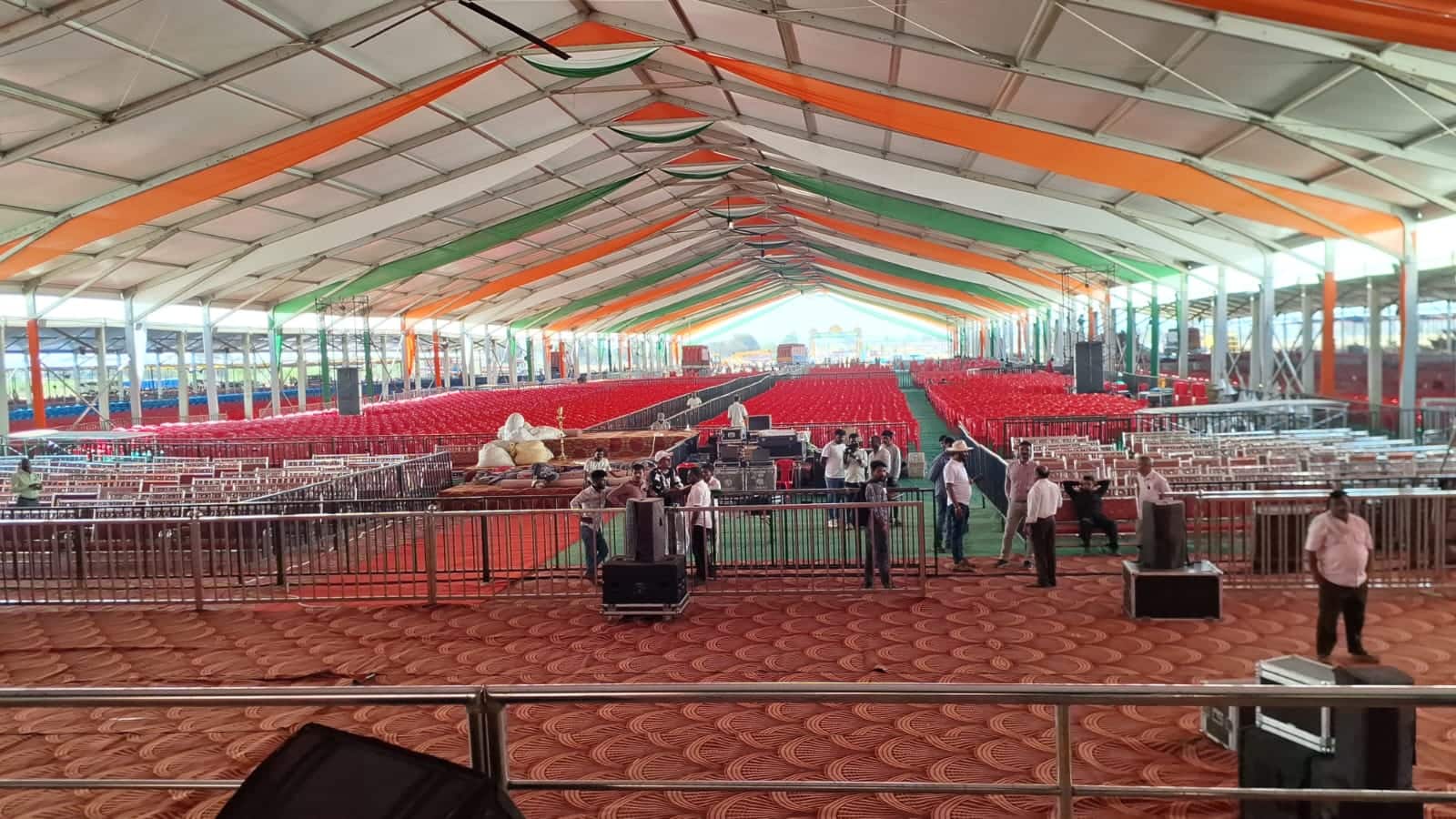 ವಾಹನ ವ್ಯವಸ್ಥೆ; ಫಲಾನುಭವಿಗಳನ್ನು ಕರೆತರಲು ರಸ್ತೆ ಸಾರಿಗೆ ಸಂಸ್ಥೆಯ 2,140 ಬಸ್ಸುಗಳು, 195 ಖಾಸಗಿ ಬಸ್ಗಳು ಹಾಗೂ 215 ಶಾಲಾ ಕಾಲೇಜು ಬಸ್ಸುಗಳು ಸೇರಿ 2,550 ವಾಹನಗಳನ್ನು ಬಳಸಲಾಗುತ್ತಿದೆ. ಪ್ರತಿ ಬಸ್ಸಿಗೆ ಎರಡು ನೋಡಲ್ ಅಧಿಕಾರಿಗಳನ್ನು ನೇಮಕ ಮಾಡಲಾಗಿದೆ .ಭೋಜನ ವ್ಯವಸ್ಥೆ: ಸಮಾವೇಶಕ್ಕೆ ಆಗಮಿಸುವವರಿಗೆ ಲಾಡು, ವೆಜ್ ಫಲಾವ್, ಮೊಸರನ್ನ, ಉಪ್ಪಿನಕಾಯಿ, ನೀರಿನ ಪ್ಯಾಕೆಟ್ ವ್ಯವಸ್ಥೆ ಮಾಡಲಾಗಿದೆ. ಊಟಕ್ಕೆ 200 ಕೌಂಟರ್ಗಳನ್ನು ತೆರೆಯಲಾಗಿದೆ. ಭೋಜನ ಸಿದ್ಧಪಡಿಸುವ ಕಾರ್ಯ ಶುಕ್ರವಾರದಿಂದಲೇ ಶುರುವಾಗಿದೆ. ಒಂದು ಸಾವಿರ ಜನರು ಊಟ ಬಡಿಸಲು ಅಣಿಯಾಗಿದ್ದಾರೆ. 400ಕ್ಕೂ ಹೆಚ್ಚು ಜನ ಬಾಣಸಿಗರು ಅಡುಗೆಯನ್ನು ಸಿದ್ಧಪಡಿಸುತ್ತಿದ್ದಾರೆ.
