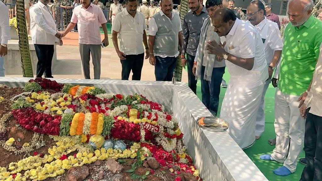 ದಾವಣಗೆರೆ ನಗರದ ಶ್ರೀ ಕಲ್ಲೇಶ್ವರ ಮಿಲ್ ಆವರಣದಲ್ಲಿ ದಾವಣಗೆರೆ ದಕ್ಷಿಣ ಕ್ಷೇತ್ರ ಶಾಸಕರಾಗಿದ್ದ ಲಿಂಗೈಕ್ಯ ಡಾ.ಶಾಮನೂರು ಶಿವಶಂಕರಪ್ಪ ಸಮಾಧಿಗೆ ಕೇಂದ್ರ ಸಚಿವ, ಮಾಜಿ ಮುಖ್ಯಮಂತ್ರಿ ಎಚ್.ಡಿ.ಕುಮಾರಸ್ವಾಮಿ ಅವರು ಜೆಡಿಎಸ್ ಮುಖಂಡರ ಸಮೇತ ತೆರಳಿ ಪುಷ್ಪನಮನ ಸಲ್ಲಿಸಿ, ಪ್ರದಕ್ಷಿಣೆ ಹಾಕಿದರು.
