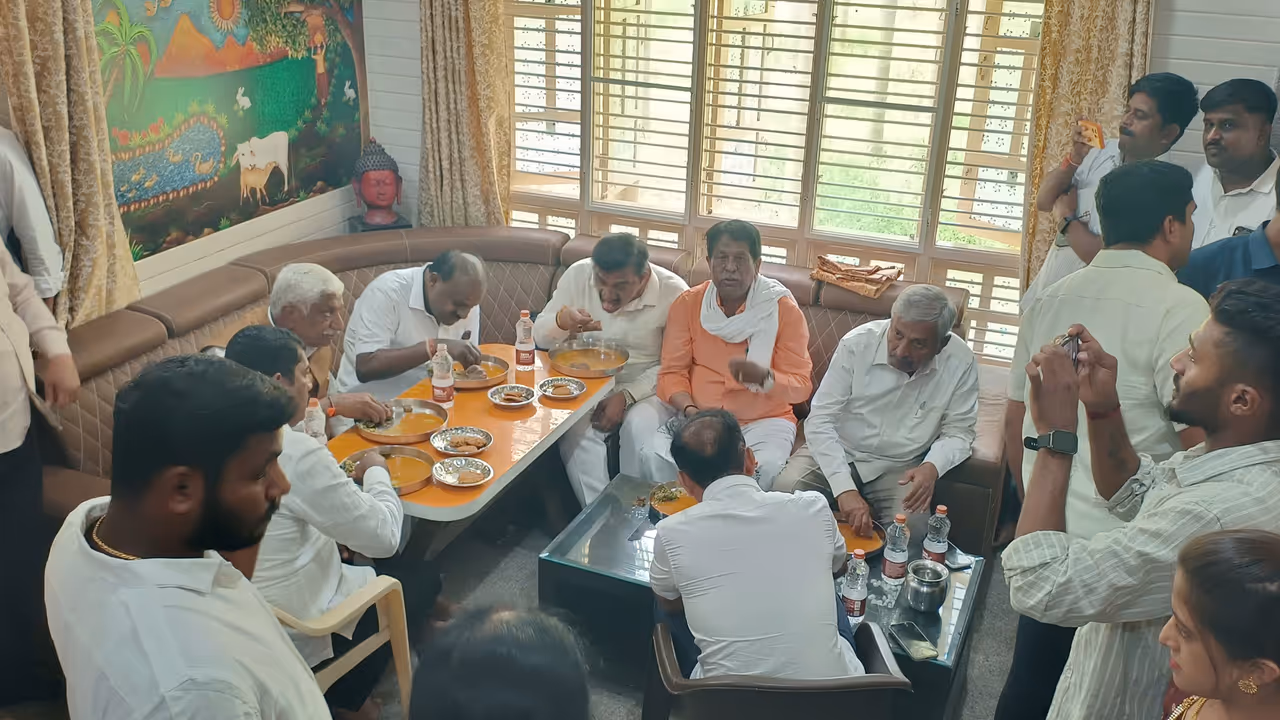 ಜೆಡಿಎಸ್ ಕಾರ್ಯಕರ್ತನ ಮನೆಯಲ್ಲಿ ಮಾಜಿ ಮುಖ್ಯಮಂತ್ರಿ ಹಾಗೂ ಕೇಂದ್ರ ಸಚಿವರಾಗಿರುವ ಎಚ್.ಡಿ.ಕುಮಾರಸ್ವಾಮಿ ಮುದ್ದೆ, ಸೊಪ್ಪಿನ ಸಾರು, ಅನ್ನ, ಮೊಸರು ಸವಿದು ಕಾರ್ಯಕರ್ತನ ಮನಸ್ಸಿಗೆ ಮುದ ನೀಡಿದರು.