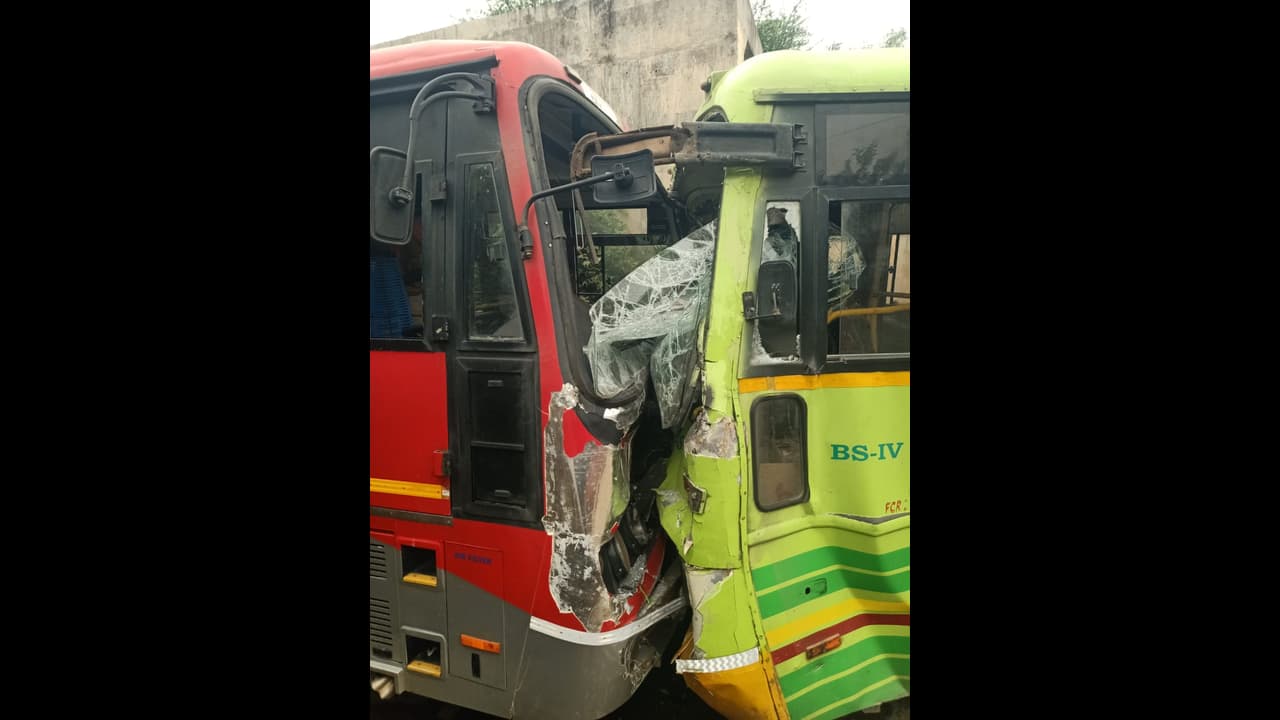 ಅಪಘಾತಕ್ಕೆ ಕಾರಣ: ಯಲುವಿಗಿ ರೈಲ್ವೆ ಕೆಳಸೇತುವೆಯಲ್ಲಿ ಎರಡು ಭಾಗಗಳಿದ್ದು, ಬಸ್ಗಳು ಒಂದೇ ಮಾರ್ಗದಲ್ಲಿ ಸಂಚಾರ ಮಾಡಿದ್ದು ಹಾಗೂ ಅತಿಯಾದ ವೇಗ ಅಪಘಾತಕ್ಕೆ ಕಾರಣ ಎಂದು ಬಸ್ನಲ್ಲಿದ್ದ ಪ್ರಯಾಣಿಕರು ದೂರಿದರು.