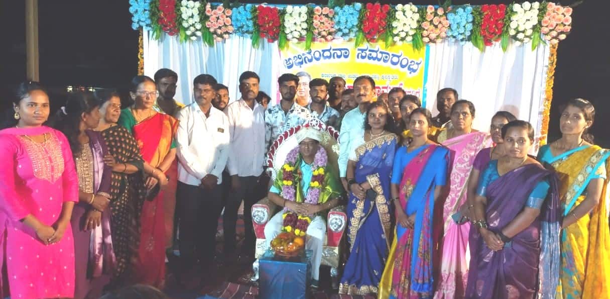 ರಾಜ್ಯ ಮಟ್ಟದ ಉತ್ತಮ ಶಿಕ್ಷಕ ಪ್ರಶಸ್ತಿಗೆ ಭಾಜನರಾದ ಹೋಬಳಿಯ ನ್ಯಾಮನಹಳ್ಳಿ ಸರ್ಕಾರಿ ಶಾಲೆಯ ಹಿಂದಿನ ಮುಖ್ಯಶಿಕ್ಷಕ ಸಂತಾನರಾಮನ್ಗೆ ಶಾಲಾಭಿವೃದ್ಧಿ ಸಮಿತಿ, ಹಿರಿಯ ವಿದ್ಯಾರ್ಥಿಗಳು ಗ್ರಾಮಸ್ಥರು ಯುವಕರು ಪುಟಾಣಿ ಮಕ್ಕಳು ಸೇರಿ ಹೃದಯಸ್ಪರ್ಶಿ ಅಭಿನಂದನೆ ಸಲ್ಲಿಸಿದರು.ಸಮಾರಂಭದಲ್ಲಿ ಮೈಸೂರುಪೇಟ ತೊಡಿಸಿ ಅಭಿನಂದಿಸಿದ ನಂತರ ಹಿರಿಯ ಕೆಎಎಸ್ ಅಧಿಕಾರಿ ವೇಣುಗೋಪಾಲ್ ಮಾತನಾಡಿ, ನ್ಯಾಮನಹಳ್ಳಿಯಲ್ಲಿ 16 ವರ್ಷ ಮುಖ್ಯಶಿಕ್ಷಕರಾಗಿ ಸೇವೆ ಮಾಡಿದ ಸಂತಾನರಾಮನ್ ಗ್ರಾಮಸ್ಥರ ಹಾಗೂ ಡೇರಿ ಸಂಘದ ಮನವೊಲಿಸಿ ಗ್ರಾಮದ ಮಧ್ಯ ಭಾಗದ ಲಕ್ಷಾಂತರ ರು. ನಿವೇಶನವನ್ನು ಇಲಾಖೆಗೆ ಕೊಡಿಸಿ ಶಾಲಾ ಕೊಠಡಿಗಳನ್ನು ಮಂಜೂರು ಮಾಡಿಸಿ ಅಚ್ಚುಕಟ್ಟಾಗಿ ನಿರ್ಮಿಸಿದ್ದಾರೆ ಎಂದರು.