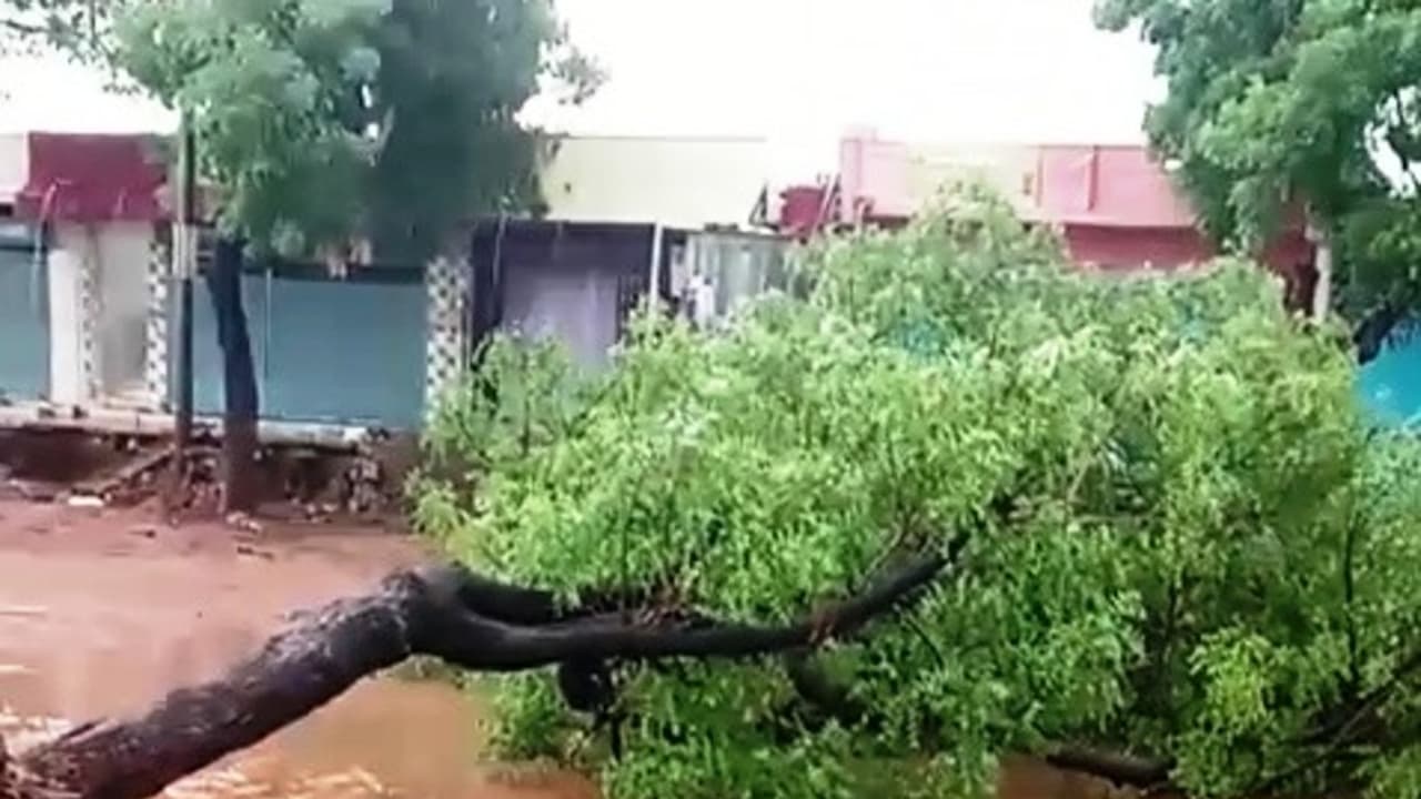 ಪಟ್ಟಣದ ಕೃಷಿ ಉತ್ಪನ್ನ ಮಾರುಕಟ್ಟೆ ಸಮಿತಿ 2ನೇ ಗೇಟ್ ಹತ್ತಿರ 3ಬೇವಿನ ಮರಗಳು, ವಿದ್ಯುತ್ ಕಂಬ ಧರೆಗುರುಳಿದೆ. ಅದೃಷ್ಟವಶಾತ್ ಯಾವುದೇ ಜೀವಹಾನಿ ಸಂಭವಿಸಿಲ್ಲ ಎಂದು ತಿಳಿದು ಬಂದಿದೆ.