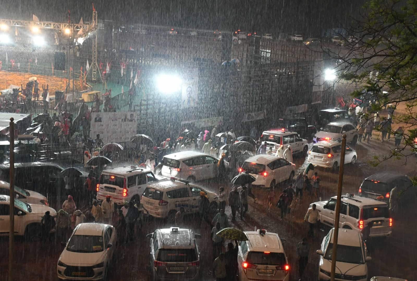 ಎಂದಿನಂತೆ ಶನಿವಾರ ಸಹ ಸಂಜೆ ವರೆಗೂ ಬಿಸಿಲಿನ ವಾತಾವರಣವಿದ್ದು, ಸಂಜೆ 6ರ ಸುಮಾರಿಗೆ ಏಕಾಏಕಿ ಮೋಡ ಕವಿದು ಗುಡುಗು-ಮಿಂಚು ಹಾಗೂ ಆಲಿಕಲ್ಲು ಸಹಿತ ಮಳೆ ಸುರಿಯಿತು. ಬಿರು ಬಿಸಿಲನಿಂದ ಕಾದು ಹಂಚಿನಂತಾಗಿದ್ದ ಭೂವಿಗೆ ತಂಪಿನ ಮಳೆ ಸುರಿಯಿತು. ಬೇಸಿಗೆ ಬಿಸಿಯಿಂದ ಬೇಸತ್ತ ಜನರಿಗೂ ತಂಪಾದ ಹವಾಮಾನ ಮುದ ತರಿಸಿತು. ಆದರೆ, ಏಕಾಏಕಿ ಜೋರಾಗಿ ಸುರಿದ ಮಳೆಯಿಂದ ಗಟಾರು ತುಂಬಿ ರಸ್ತೆಗಳೆಲ್ಲಾ ನೀರು. ಮುನ್ಸೂಚನೆ ಇಲ್ಲದ ಬಂದ ಕಾರಣ ಜನರು ಮಳೆಗೆ ತೋಯಿಸಿಕೊಳ್ಳಬೇಕಾಯಿತು.ಅದರಲ್ಲೂ ಶನಿವಾರ ಕರ್ನಾಟಕ ಕಾಲೇಜು ಮೈದಾನದಲ್ಲಿ ಏರ್ಪಡಿಸಿದ್ದ ಜಂಗೀ ನಿಕಾಲಿ ಕುಸ್ತಿ ಪಂದ್ಯಾವಳಿಗೆ ಮಳೆರಾಯ ಅಡ್ಡಿ ಮಾಡಿದನು. ಇನ್ನೇನು ಕುಸ್ತಿ ಪಂದ್ಯಾವಳಿಗೆ ಚಾಲನೆ ದೊರೆತು ಕೊನೆಯ ಗಣ್ಯರು ಮಾತನಾಡುವ ವೇಳೆ ಸುರಿದ ಮಳೆಯಿಂದ ಮುಂದೆ ನಡೆಯಬೇಕಿದ್ದ ಪಂದ್ಯಗಳು ಅನಿವಾರ್ಯವಾಗಿ ರದ್ದಾದವು. ಬರೀ ತೂಕದ ಪಂದ್ಯಕ್ಕೆ ಸೀಮಿತವಾಗಿ ಜಂಗೀ ನಿಕಾಲಿ ಕುಸ್ತಿ ಮಳೆಯಿಂದ ರದ್ದು ಮಾಡಬೇಕಾಯಿತು.