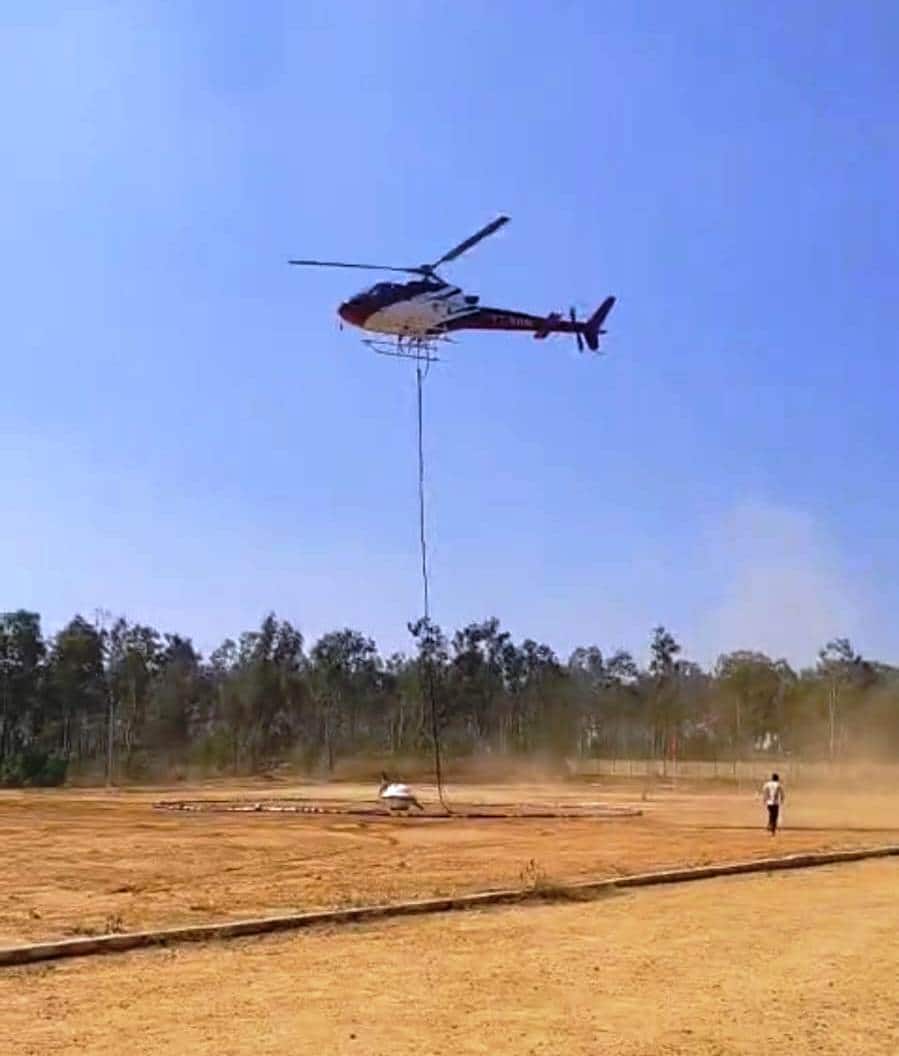 03ಜಿಯುಡಿ1: ಗುಡಿಬಂಡೆ ತಾಲೂಕಿನ ಬೀಚಗಾನಹಳ್ಳಿ ಕ್ರಾಸ್ ವ್ಯಾಪ್ತಿಯಲ್ಲಿ ಹಳದಿ ಲೋಹ ಪತ್ತೆಗಾಗಿ ಹೆಲಿಕ್ಯಾಪ್ಟರ್ ಸರ್ವೆ ಕಾರ್ಯ ಭರದಿಂದ ಸಾಗುತ್ತಿದೆ.
