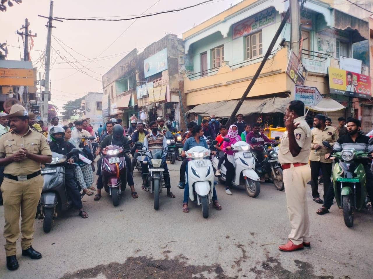 ಜಿಲ್ಲಾ ಪೊಲೀಸ್ ಅಧೀಕ್ಷಕ ನಿಖಿಲ್ ಬಿ. ಅವರ ಆದೇಶದ ಮೇರೆಗೆ ಡಿಸೆಂಬರ್ 12ರಿಂದ ತಾಲೂಕಿನಾದ್ಯಂತ ಬೈಕ್ ಸವಾರರು ಕಡ್ಡಾಯವಾಗಿ ಹೆಲ್ಮೆಟ್ ಧರಿಸಬೇಕು ಎಂಬ ಆದೇಶವನ್ನು ಜಾರಿಗೆ ತರಲಾಗಿದೆ. ಈ ಹಿನ್ನೆಲೆ ಇಲ್ಲಿನ ಮುಖ್ಯರಸ್ತೆಯಲ್ಲಿ ಹೆಲ್ಮೆಟ್ ಧರಿಸದೆ ಬೈಕ್ ಚಾಲನೆ ಮಾಡಿ, ಸಂಚಾರ ನಿಯಮ ಉಲ್ಲಂಘಿಸಿದವರನ್ನು ಪೊಲೀಸ್ ಇನ್ಸ್ಪೆಕ್ಟರ್ ಗೊಪಾಲ್ ತಡೆದು ಎಚ್ಚರಿಕೆ ಕೊಟ್ಟು ಕಳುಹಿಸಿದರು.ಗೌರಿಬಿದನೂರು ನಗರದ ಪೊಲೀಸ್ ಠಾಣೆ ಮುಂಭಾಗದಲ್ಲಿ ಇನ್ಸ್ಪೆಕ್ಟರ್ ಗೋಪಾಲ್ ರವರ ನೇತೃತ್ವದಲ್ಲಿ ಬೈಕ್ಗಳನ್ನು ತಡೆದು ಹೆಲ್ಮೆಟ್ ಧರಿಸದೆ ಚಾಲನೆ ಮಾಡುತ್ತಿದ್ದ ಸವಾರರಿಗೆ ತಮ್ಮ ಪ್ರಾಣ ಹಾನಿ ತಪ್ಪಿಸುವ ಸಲುವಾಗಿ ಹೆಲ್ಮೆಟ್ ಕಡ್ಡಾಯವಾಗಿ ಧರಿಸಿ ಬೈಕ್ ಚಾಲನೆ ಮಾಡಬೇಕು. ಹೆಲ್ಮೆಟ್ ಧರಿಸದ ಸವಾರರು ಹೆಲ್ಮೆಟ್ ತಂದು ತೋರಿಸಿ ತಮ್ಮ ವಾಹನದ ದಾಖಲಾತಿಗಳನ್ನು ತೋರಿಸುವ ಮೂಲಕ ತಮ್ಮ ಬೈಕ್ ಗಳನ್ನು ತೆಗೆದುಕೊಂಡು ಹೋಗಬಹುದಾಗಿದೆ, ಪ್ರತಿಯೊಬ್ಬ ಬೈಕ್ ಸವಾರರು ಕಡ್ಡಾಯವಾಗಿ ತಪ್ಪದೇ ಹೆಲ್ಮೆಟ್ ಧರಿಸಿ ತಮ್ಮ ಜೀವವನ್ನು ಕಾಪಾಡಿಕೊಳ್ಳುವಂತೆ ತಿಳಿಹೇಳಿದರು.