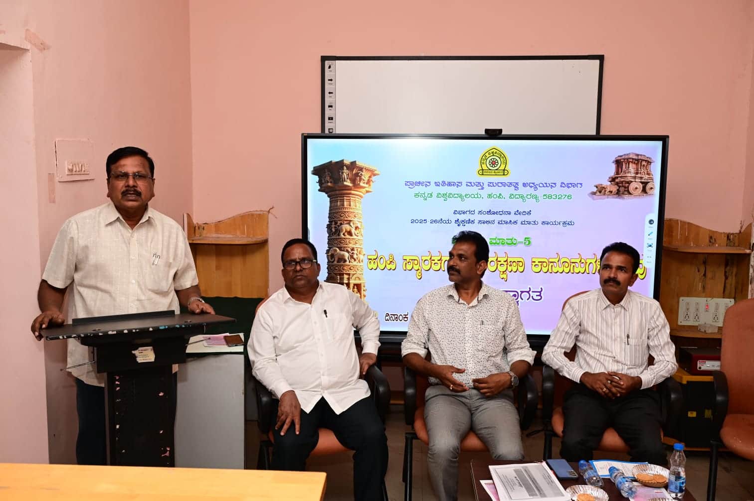 ಕನ್ನಡ ವಿಶ್ವವಿದ್ಯಾಲಯದಲ್ಲಿ ನಡೆದ ಹಂಪಿ ಸ್ಮಾರಕಗಳ ಸಂರಕ್ಷಣಾ ಕಾನೂನುಗಳ ಅರಿವು ಎಂಬ ವಿಶೇಷ ಉಪನ್ಯಾಸ ಕಾರ್ಯಕ್ರಮದಲ್ಲಿ ಪ್ರಾಧ್ಯಾಪಕ ಡಾ.ವಾಸುದೇವ ಬಡಿಗೇರ ಮಾತನಾಡಿದರು.