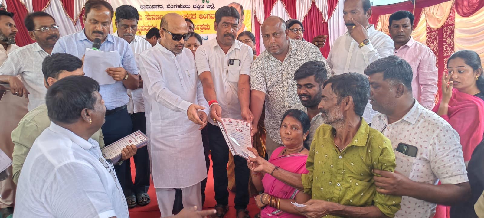 21ಕೆಆರ್ ಎಂಎನ್ 1.ಜೆಪಿಜಿರಾಮನಗರದ ಶಾಸಕರ ಕಚೇರಿ ಮುಂಭಾಗದಲ್ಲಿ ಶನಿವಾರ ಆಯೋಜಿಸಿದ್ದ ಸಮಾರಂಭದಲ್ಲಿ ಶಾಸಕ ಎಚ್.ಎ.ಇಕ್ಬಾಲ್ ಹುಸೇನ್ ಫಲಾನುಭವಿಗಳಿಗೆ ಹಕ್ಕು ಪತ್ರ ವಿತರಣೆ ಮಾಡಿದರು.