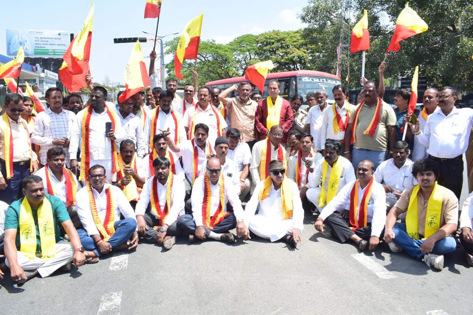 ಬೆಂಗಳೂರು-ಮೈಸೂರು ಹೆದ್ದಾರಿಯಲ್ಲಿ ಕುಳಿತು ರಸ್ತೆ ಸಂಚಾರಕ್ಕೆ ತಡೆಯೊಡ್ಡಿದ ಪ್ರತಿಭಟನಾಕಾರರನ್ನು ಮನವೊಲಿಸಲು ಪೊಲೀಸರು ಪ್ರಯತ್ನಿಸಿದರು. ಯಾವುದೇ ಕಾರಣಕ್ಕೂ ಹೆದ್ದಾರಿಯಿಂದ ಮೇಲೇಳುವುದಿಲ್ಲಿ ಪಟ್ಟುಹಿಡಿದರು. ಇದರಿಂದ ಹಿರಿಯ ಪೊಲೀಸ್ ಅಧಿಕಾರಿಗಳ ಸೂಚನೆ ಮೇರೆಗೆ ವಾಟಾಳ್ ನಾಗರಾಜ್, ಕೆ.ಕುಮಾರ್, ಮಂಜುನಾಥ್ ಸೇರಿದಂತೆ ಹಲವರನ್ನು ಬಂಧಿಸಿ, ಪೊಲೀಸ್ ಪರೇಡ್ ಮೈದಾನಕ್ಕೆ ಕರೆದೊಯ್ದು, ಪ್ರಕರಣ ದಾಖಲಿಸಿ ನಂತರ ಬಿಡುಗಡೆ ಮಾಡಿದರು.ಪ್ರತಿಭಟನಾಕಾರರನ್ನುದ್ದೇಶಿಸಿ ಕನ್ನಡ ಸೇನೆ ರಾಜ್ಯಾಧ್ಯಕ್ಷ ಕುಮಾರ್ ಮಾತನಾಡಿ, ರಾಜ್ಯದಲ್ಲಿ ಕನ್ನಡ ಮಾಧ್ಯಮ ಶಾಲೆಗಳ ಸ್ಥಿತಿ ಶೋಚನೀಯವಾಗಿದ್ದು, ಸರ್ಕಾರ ಕೂಡಲೇ ಎಚ್ಚೆತ್ತುಕೊಂಡು ಶಾಲೆಗಳನ್ನು ಉಳಿಸಲು ಕ್ರಮ ವಹಿಸಬೇಕು ಎಂದು ಆಗ್ರಹಿಸಿದರು.