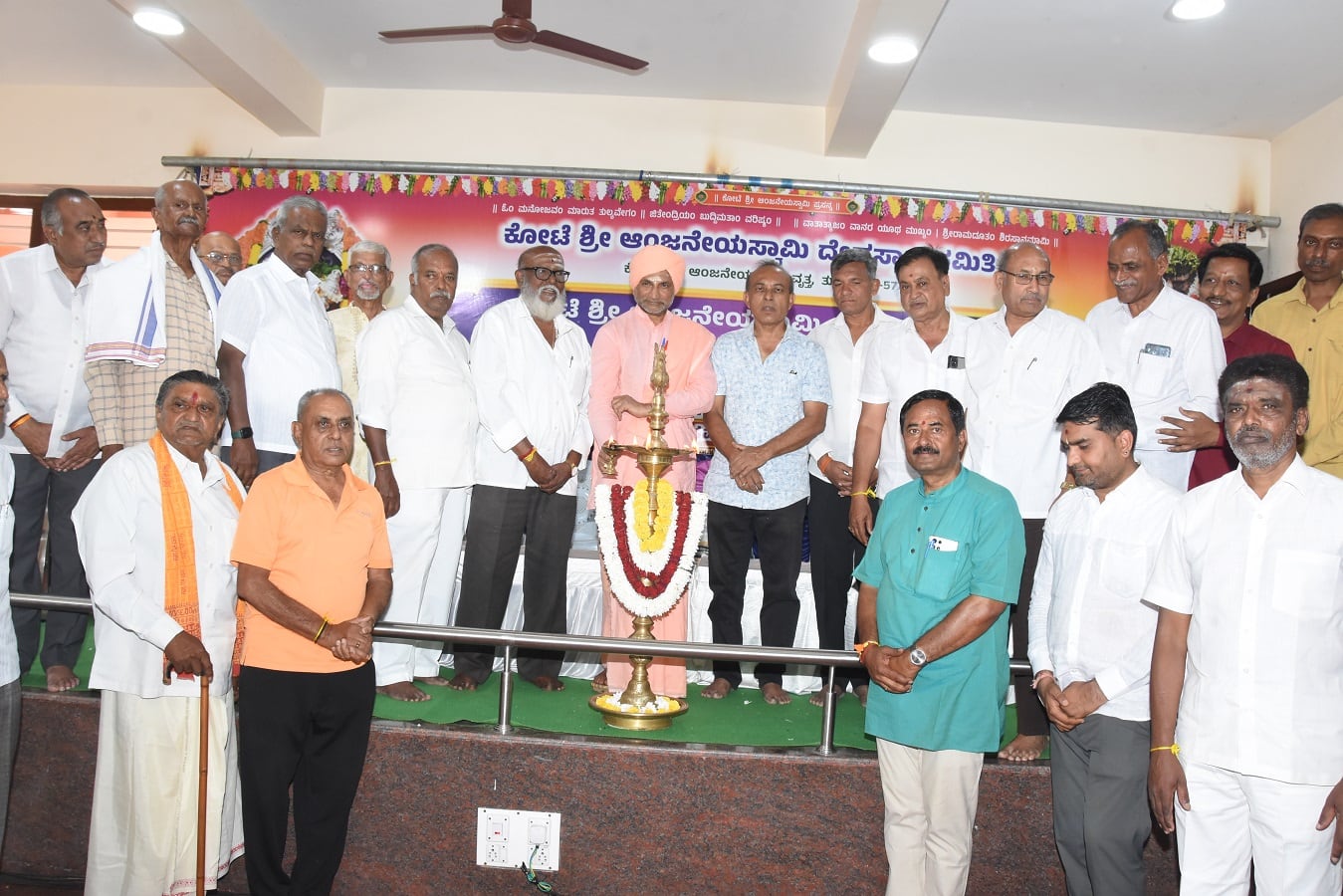 ದೇವಸ್ಥಾನ ಬಳಿ ನಿರ್ಮಿಸಿರುವ 75 ಅಡಿ ಎತ್ತರದ ಬೃಹತ್ ಆಂಜನೇಯಸ್ವಾಮಿ ಮೂರ್ತಿ ತುಮಕೂರಿನ ಕೀರ್ತಿಕಳಶವಾಗಿದೆ. ನಗರದ ಲ್ಯಾಂಡ್ ಮಾರ್ಕ್ ಆಗಿ ಖ್ಯಾತಿ ಪಡೆದಿದೆ. ದೇವಸ್ಥಾನದ ಕೋಟೆ ಆಂಜನೇಯಸ್ವಾಮಿ ಮೂರ್ತಿಯೂ ದೇಶದಲ್ಲೇ ಅಪರೂಪ ಎನ್ನಬಹುದಾದ ಲಕ್ಷಣದ ಮೂರ್ತಿಯಾಗಿದೆ. ಪ್ರಾರ್ಥನಾ ಮಂದಿರದಲ್ಲಿ ವಿಷ್ಣು ಸಹಸ್ರನಾಮ, ಲಲಿತ ಸಹಸ್ರನಾಮ, ಶಿವ ಸಹಸ್ರನಾಮದಂತಹ ವೇದಪೂರ್ಣ ಪೂಜಾ, ಧಾರ್ಮಿಕ ಕಾರ್ಯಕ್ರಮಗಳು ನಡೆಯಲಿ ಎಂದು ಹಿರೇಮಠ ಸ್ವಾಮೀಜಿ ಸಲಹೆ ಮಾಡಿದರು.ಶಾಸಕ ಜಿ.ಬಿ.ಜ್ಯೋತಿಗಣೇಶ್ ಅವರು ಪೂಜಾ ಕಾರ್ಯಕ್ರಮದಲ್ಲಿ ಭಾಗವಹಿಸಿದ್ದರು. ಕೋಟೆ ಆಂಜನೇಯಸ್ವಾಮಿ ದೇವಸ್ಥಾನ ಸಮಿತಿ ಅಧ್ಯಕ್ಷ ಸಿ.ವಿ.ಮಹದೇವಯ್ಯ, ಉಪಾಧ್ಯಕ್ಷ ಎಲ್.ವಿಜಯಕುಮಾರ್, ಕಾರ್ಯದರ್ಶಿ ಪಿ.ಆರ್.ಸಿದ್ಧಪ್ಪ, ಸಹ ಕಾರ್ಯದರ್ಶಿ ಎನ್.ಕೃಷ್ಣಮೂರ್ತಿ, ಖಜಾಂಚಿ ಟಿ.ವಿ.ಪಾರ್ಶ್ವನಾಥ್, ನಗರಪಾಲಿಕೆ ಮಾಜಿ ಸದಸ್ಯರಾದ ಟಿ.ಎಂ.ಮಹೇಶ್, ಟಿ.ಎ.ಬಾಲಕೃಷ್ಣ, ಮುಖಂಡರಾದ ಬಾವಿಕಟ್ಟೆ ಮಂಜುನಾಥ್, ಟಿ.ಸಿ.ಓಹಿಲೇಶ್ವರ್, ಸುರೇಶ್ ರಾವ್, ಸಮಿತಿ ನಿರ್ದೇಶಕರಾದ ಟಿ.ಕೆ.ಶಿವಶಂಕರ್, ಕೆ.ಎಂ.ಪಟೇಲ್, ಶಾಂತರಾಜು, ಎಸ್.ಪಿ.ಚಿದಾನಂದ್, ಮಹೇಂದ್ರಕುಮಾರ್, ಟಿ.ಕೆ.ಶಾಂತಪ್ರಸಾದ್, ಕೆ.ಎಸ್.ನಾಗೇಶ್, ಅರುಣ್ ಹೆಬ್ಬಾರ್, ಕೆ.ಆರ್.ಪ್ರಸನ್ನಕುಮಾರ್, ಟಿ.ವಿ.ಶ್ರೀನಿವಾಸಮೂರ್ತಿ, ಕೆ.ರಂಗನಾಥ್, ಎಸ್.ಜಗದೀಶ್, ಟಿ.ಜಿ.ಪ್ರಸನ್ನಕುಮಾರ್, ಟಿ.ವಿ.ದೀಪಕ್ ಮೊದಲಾದವರು ಭಾಗವಹಿಸಿದ್ದರು. ಇದರ ಅಂಗವಾಗಿ ಪ್ರಾರ್ಥನಾ ಮಂದಿರದಲ್ಲಿ ಬೆಳಿಗ್ಗೆ ಶ್ರೀನಿವಾಸಾಚಾರ್ಯರು ಹಾಗೂ ವೃಂದದವರು ಮತ್ತು ದೇವಸ್ಥಾನದ ಪ್ರಧಾನ ಅರ್ಚಕರಾದ ಪಟ್ಟಾಭಿರಾಮಾಚಾರ್ಯರ ನೇತೃತ್ವದಲ್ಲಿ ಸುಪ್ರಭಾತ ಸೇವೆ, ವೇದಪಾರಾಯಣ, ಕಳಸಾರಾಧನೆ, ಶ್ರೀರಾಮತಾರಕ ಹೋಮ, ಆಂಜನೇಯಸ್ವಾಮಿ ಮೂಲಮಂತ್ರ ಹೋಮ, ಮಹಾಸುದರ್ಶನ ಹೋಮ, ಶಾಂತಿಹೋಮ, ಪೂರ್ಣಾಹುತಿ, ಮಂತ್ರಪುಷ್ಪ ಅಷ್ಠಾವಧಾನಸೇವೆ ಮುಂತಾದ ಪೂಜಾ ಕಾರ್ಯಕ್ರಮ ಹಮ್ಮಿಕೊಳ್ಳಲಾಗಿತ್ತು. ಪ್ರಾರ್ಥನಾ ಮಂದಿರ ನಿರ್ಮಾಣಕ್ಕೆ ನೆರವಾದ ದಾನಿಗಳನ್ನು ಈ ವೇಳೆ ಸನ್ಮಾನಿಸಿ ಗೌರವಿಸಲಾಯಿತು.ಎಲ್ಲರಿಗೂ ಲೇಸು ಬಯಸುವ ಹಿಂದೂ ಸಂಸ್ಕೃತಿ