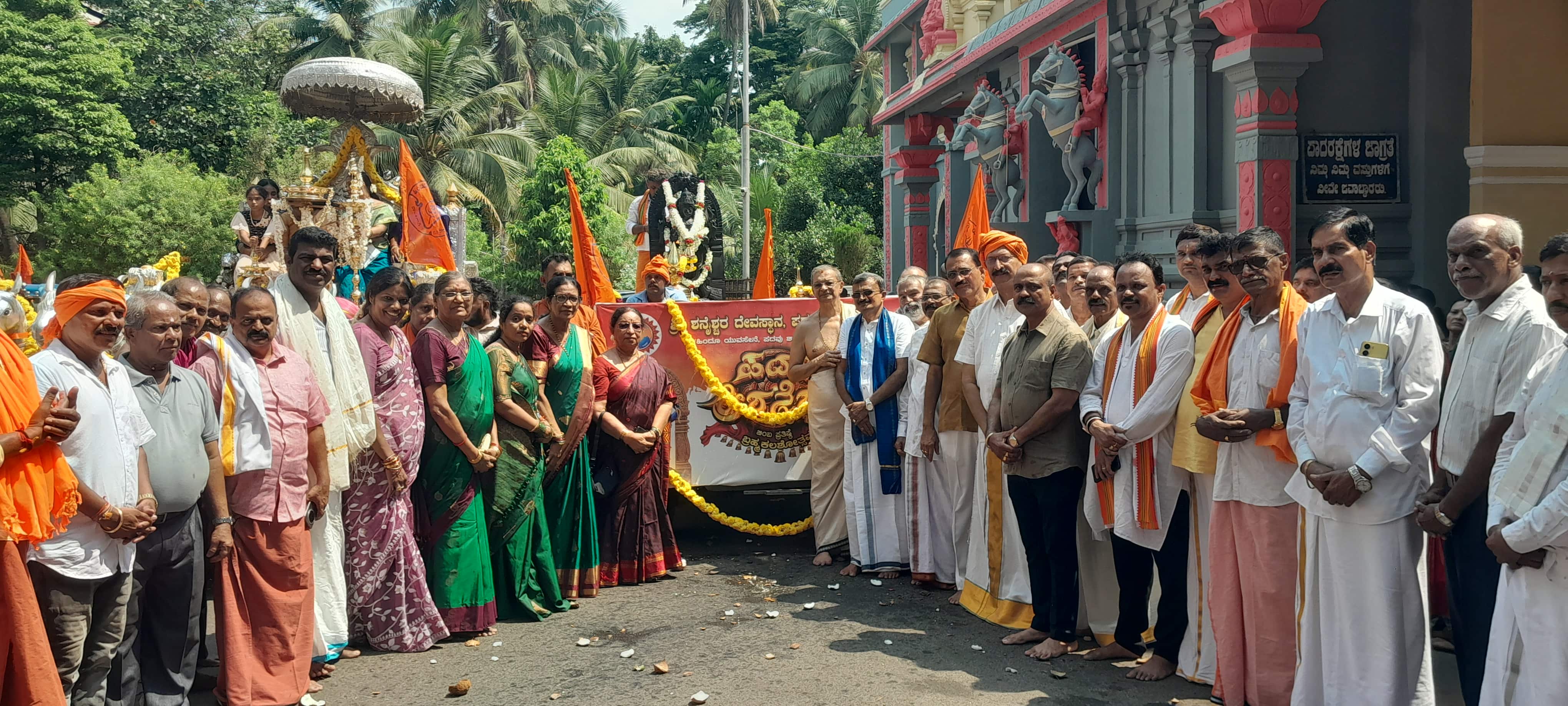 ಹಿಂದೂ ಯುವಸೇನೆ ಪದವು ಶಾಖೆ, ಶ್ರೀ ಶನೈಶ್ಚರ ಪೂಜಾ ಸಮಿತಿ ಟ್ರಸ್ಟ್ನಿಂದ ಕುಲಶೇಖರ ಪದವು ವ್ಯಾಪ್ತಿಯಲ್ಲಿ ನಿರ್ಮಾಣಗೊಂಡ ಶ್ರೀ ಶನೈಶ್ಚರ ಮಹಾಗಣಪತಿ, ದುರ್ಗಾದೇವಿ ದೇವಸ್ಥಾನದ ಬಿಂಬ ಪ್ರತಿಷ್ಠೆ ಹಾಗೂ ಬ್ರಹ್ಮಕಲಶೋತ್ಸವ ಅಂಗವಾಗಿ ಭಾನುವಾರ ಸಂಭ್ರಮದ ಹೊರೆಕಾಣಿಕೆ ಮೆರವಣಿಗೆ ನಡೆಯಿತು.