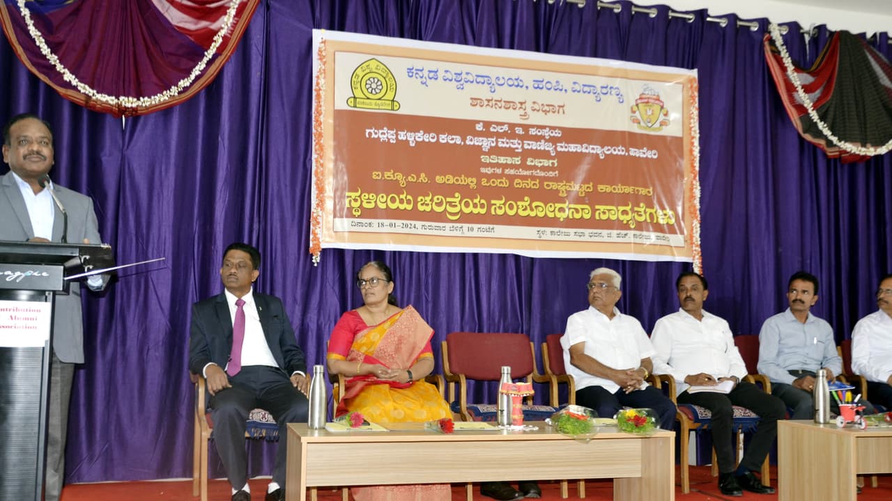 ನಗರದ ಗುದ್ಲೆಪ್ಪ ಹಳ್ಳಿಕೇರಿ ಮಹಾವಿದ್ಯಾಲಯದಲ್ಲಿ ಹಂಪಿ ಕನ್ನಡ ವಿಶ್ವವಿದ್ಯಾಲಯದ ಶಾಸನಶಾಸ್ತ್ರ ವಿಭಾಗ ಹಾಗೂ ಕಾಲೇಜಿನ ಐಕ್ಯೂಎಸಿ ಮತ್ತು ಇತಿಹಾಸ ವಿಭಾಗಗಳು ಜಂಟಿಯಾಗಿ ಆಯೋಜಿಸಿದ್ದ ಸ್ಥಳೀಯ ಚರಿತ್ರೆಯ ಸಂಶೋಧನಾ ಸಾಧ್ಯತೆಗಳು ವಿಷಯವಾಗಿ ಜರುಗಿದ ರಾಷ್ಟ್ರೀಯ ಕಾರ್ಯಾಗಾರ ಉದ್ಘಾಟಿಸಿ ಮಾತನಾಡಿದರು.ಆಧುನಿಕತೆಯ ಭರಾಟೆಯತ್ತ ಯುವ ಸಮೂಹ ಮುಳುಗಿರುವುದು ವಿಷಾದನೀಯ. ಭಾರತದ ಚರಿತ್ರೆ, ಸಂಸ್ಕೃತಿ, ಪರಂಪರೆ ಮತ್ತು ಇತಿಹಾಸದ ಬಗ್ಗೆ ಅರಿವು ಮೂಡಿಸುವುದು ಇಂದಿನ ಅನಿವಾರ್ಯವಾಗಿದೆ. ನಾಗಾಲೋಟದಲ್ಲಿ ಸಾಗುತ್ತಿರುವ ಸಮೂಹವಿಂದು ತಾಳ್ಮೆ, ಸಹನೆಯನ್ನು ಕಳೆದುಕೊಂಡಿದೆ. ಏನೆಲ್ಲವನ್ನೂ ಕೊಡುಗೆಯಾಗಿ ನೀಡಿದ ಈ ದೇಶದ ಪರಿಪೂರ್ಣ ಇತಿಹಾಸದ ಅರಿವು ಮತ್ತು ತಿಳಿವು ಒಡಮೂಡಿದಾಗ ಪೂರ್ಣತೆ ಸಾಧ್ಯವಿದೆ. ಈ ನಾಡಿನ ರಾಜಮಹಾರಾಜರು ಅನೇಕ ದೇಗುಲಗಳನ್ನು ಅತ್ಯಂತ ಕಲಾತ್ಮಕವಾಗಿ ಶಿಲ್ಪಗಳಿಂದ ನಿರ್ಮಿಸಿದ್ದಲ್ಲದೇ ವಿವಿಧ ಪ್ರಾಕಾರಗಳಲ್ಲಿ ಕೊಡುಗೆಗಳನ್ನು ನೀಡಿರುವುದು ಶಾಸನಗಳಿಂದ, ದಾಖಲೆ ಸಂಪುಟಗಳಿಂದ ತಿಳಿದುಬರುತ್ತದೆ. ಚರಿತ್ರೆ ಮತ್ತು ಸಾಹಿತ್ಯ ಈ ದೇಶದ ಎರಡು ಕಣ್ಣುಗಳಿದ್ದಂತೆ ಎಂದರು.