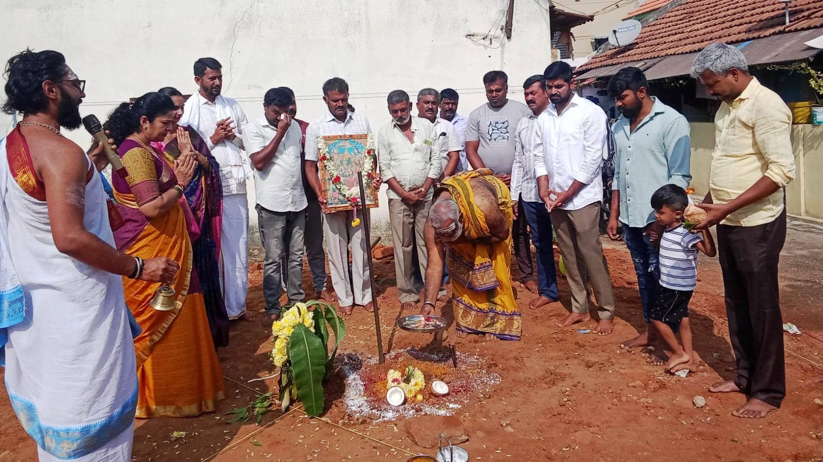 ಅವರು ಕೋಟೆ ಮೈಲಾರಲಿಂಗನ ಬೀದಿಯಲ್ಲಿ ಶ್ರೀರಾಮ ಮಂದಿರ ನಿರ್ಮಾಣಕ್ಕೆ ಗುದ್ದಲಿ ಪೂಜೆ ನೆರವೇರಿಸಿ ೨೫,೦೦೦ ಸಾವಿರ ದೇಣಿಗೆಯನ್ನು ನೀಡಿ ಮಾತನಾಡಿ ಸಮಾಜದ ಉತ್ತಮ ಕಾರ್ಯಗಳಿಂದ ಖಿನ್ನತೆ ತಪ್ಪಿ ಮನಸ್ತಾಪಗಳಿಲ್ಲದೆ ಆತ್ಮೀಯತೆ, ಸೌಹಾರ್ದ ಮನಸ್ಸಿನ ಶಕ್ತಿ ಹೆಚ್ಚು ಆರೋಗ್ಯಕರ ಸಮಾಜಕ್ಕೆ ಪೂರಕವಾಗುತ್ತದೆ, ಸಂಘದ ಸದಸ್ಯರು ಒಟ್ಟುಗೂಡಿ ರಾಮಮಂದಿರವನ್ನು ನಿರ್ಮಿಸಿ ಉದ್ಘಾಟನೆಯಾಗಲಿ ಎಂದರು.ಸಂಘದ ಅಧ್ಯಕ್ಷ ಹಾಗೂ ಪುರಸಭೆಯ ಮಾಜಿ ಅಧ್ಯಕ್ಷ ಮೋಹನ್ಕೋಟೆ ದಂಪತಿಗಳು ಪೂಜಾ ಕೈಂಕರ್ಯವನ್ನು ಬಾಲಕೃಷ್ಣ ಭಟ್ಟರ ನೇತೃತ್ವದಲ್ಲಿ ವಿಜೃಂಭಣೆಯಿಂದ ನೆರವೇರಿತು. ಇದೇ ಸಂದರ್ಭದಲ್ಲಿ ಪುರಸಭೆ ಮಾಜಿ ಅಧ್ಯಕ್ಷೆ ಬನಶಂಕರಿ ರಘು, ಕನ್ನಡ ಪರ ಹೋರಾಟಗಾರ ಪುಟ್ಟಣ್ಣ ಗೋಕಾಕ್, ಸಂಘದ ಪದಾಧಿಕಾರಿಗಳಾದ ವೆಂಕಟೇಶ್, ಶಂಕರ್, ಲತಾ, ಸೋಮಣ್ಣ ಹಾಗೂ ಮತ್ತಿತರರು ಭಾಗವಹಿಸಿದ್ದರು.