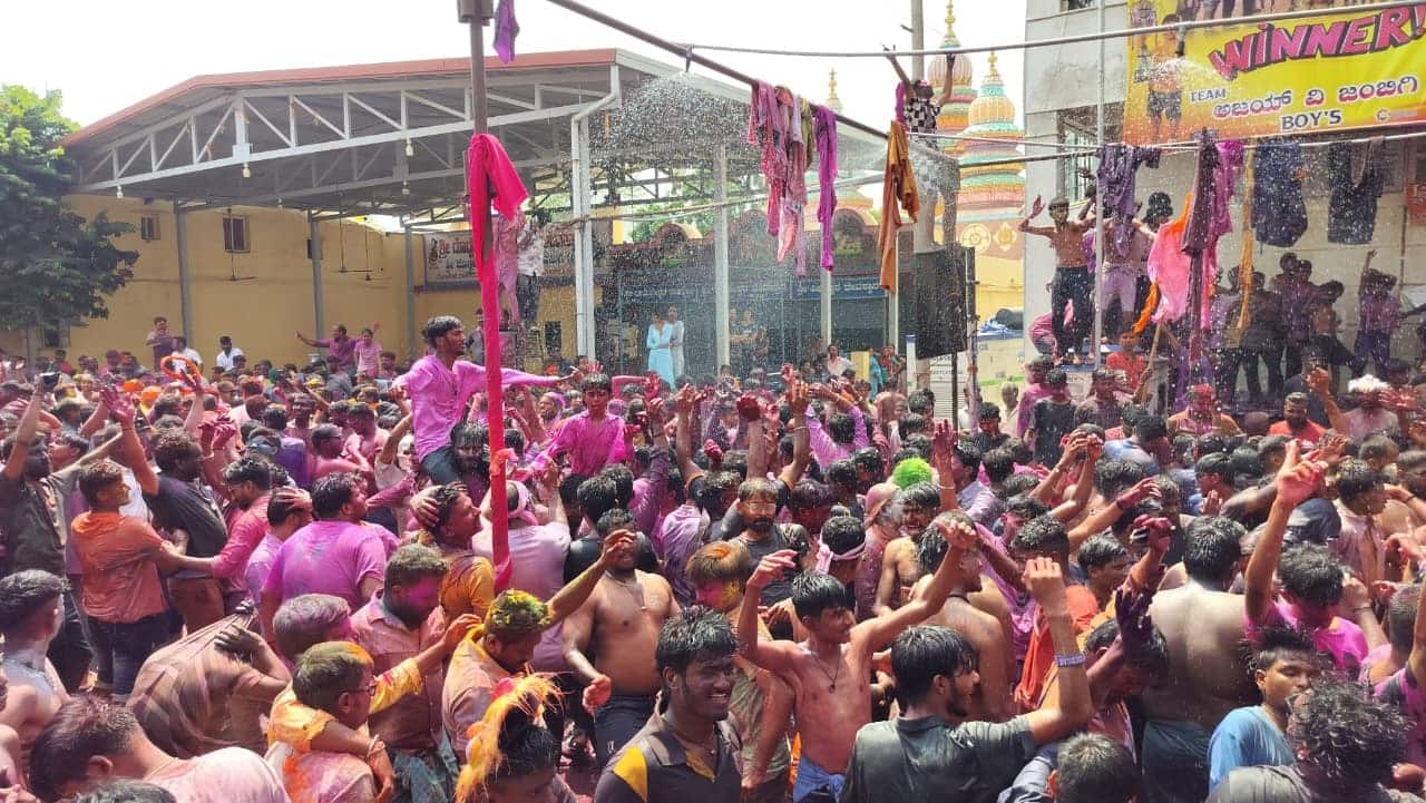 ಬೆಳಗ್ಗೆಯಿಂದಲೆ ಚಿಣ್ಣರು ರಾಜೇಶ್ವರಿನಗರ, ಮೃತ್ಯುಂಜಯನಗರ, ಹೌಸಿಂಗ್ ಬೋರ್ಡ್ ಕಾಲನಿ, ಗೌರಿಶಂಕರನಗರ, ದೊಡ್ಡಪೇಟೆ, ಕುರುಬಗೇರಿ, ಮಾರುತಿನಗರ, ಕೋಟೆ ಮುಂತಾದ ಪ್ರದೇಶಗಳಲ್ಲಿ ಪರಸ್ಪರ ಬಣ್ಣ ಎರಚುವ ಮೂಲಕ ಹಬ್ಬ ಆರಂಭಿಸಿದರು. ಹತ್ತು ಗಂಟೆ ಆನಂತರ ಯುವಕರು, ವಯಸ್ಕರು ರಂಗಿನಾಟಕ್ಕೆ ಮುಂದಾದರು. ಹೌಸಿಂಗ್ ಬೋರ್ಡ್ ಕಾಲನಿ, ವೀರಭದ್ರೇಶ್ವರನಗರ, ದೊಡ್ಡಪೇಟೆ ಮುಂತಾದ ಪ್ರದೇಶಗಳಲ್ಲಿ ಯುವತಿಯರು, ಮಹಿಳೆಯರು ಕೂಡ ಹೆಚ್ಚಿನ ಉತ್ಸಾಹದಿಂದ ಬಣ್ಣದಾಟದಲ್ಲಿ ನಿರತರಾಗಿದ್ದರು.ಬೈಕ್ ಹೋಳಿ: ಯುವಕ-ಯುವತಿಯರು ಹೆಚ್ಚಿನ ಸಂಖ್ಯೆಯಲ್ಲಿ ಬೈಕುಗಳ ಮೇಲೆ ತಿರುಗಾಡುತ್ತ ಹೋಳಿ ಆಚರಣೆಯಲ್ಲಿ ಪಾಲ್ಗೊಂಡಿದ್ದರು. ಅಲ್ಲಲ್ಲಿ ಯುವಕರು ಹಲಗೆ ಬಾರಿಸುತ್ತಾ ಪರಸ್ಪರ ಬಣ್ಣ ಎರಚುತ್ತಾ ಸಂಭ್ರಮಿಸಿದರು.