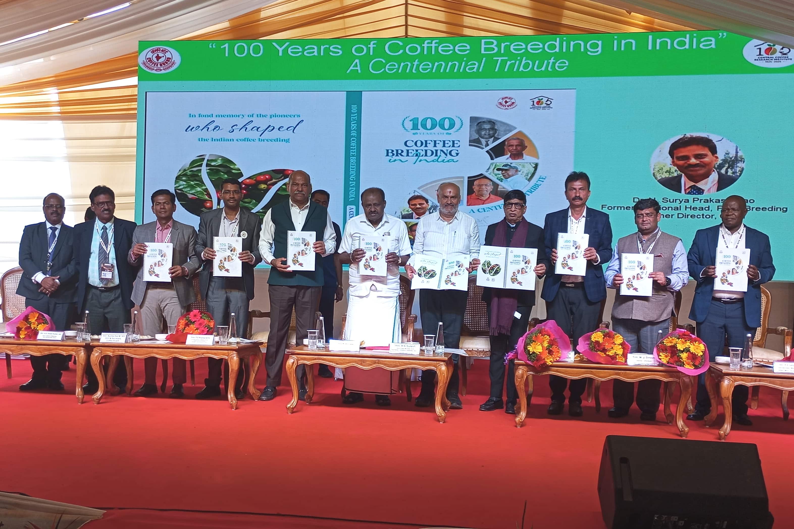 ೨೨ಬಿಹೆಚ್ಆರ್ ೨:ಬಾಳೆಹೊನ್ನೂರಿನ ಕೇಂದ್ರೀಯ ಕಾಫಿ ಸಂಶೋಧನಾ ಕೇಂದ್ರ ಆಯೋಜಿಸಿದ್ದ ಶತಮಾನೋತ್ಸವ ಸಮಾರೋಪದಲ್ಲಿ ಸಿಸಿಆರ್ಐ ನೂರರ ನೆನಪಿನ ಕಾಫಿ ಕೃಷಿಕರ ಕಥನ ಕೈಪಿಡಿಯನ್ನು ಕೇಂದ್ರ ಸಚಿವ ಎಚ್.ಡಿ.ಕುಮಾರಸ್ವಾಮಿ ಬಿಡುಗಡೆಗೊಳಿಸಿದರು. ೨೨ಬಿಹೆಚ್ಆರ್ ೩: