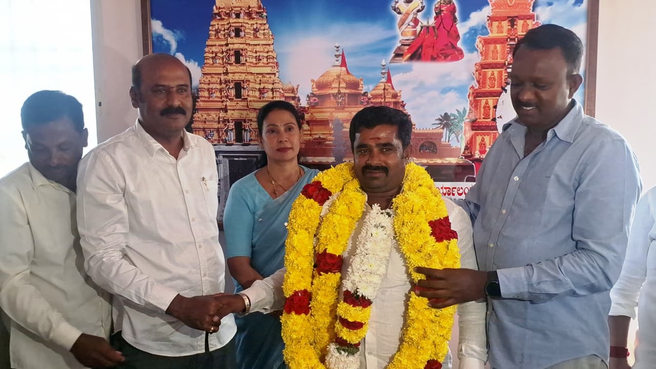 ಫೋಟೋ: 19 ಹೆಚ್ಎಸ್ಕೆ 2ಹೊಸಕೋಟೆಯ ನಗರಸಭೆ ಸ್ಥಾಯಿ ಸಮಿತಿ ಅಧ್ಯಕ್ಷರಾಗಿ ಆಯ್ಕೆಯಾಗಿರುವ 21ನೇ ವಾರ್ಡ್ ಸದಸ್ಯ ಕೆ.ದೇವರಾಜ್ ಅವರನ್ನು ನಗರಸಭಾಧ್ಯಕ್ಷೆ ಆಶಾ ರಾಜಶೇಖರ್, ಉಪಾಧ್ಯಕ್ಷ ಸಿಪಿ.ನವೀನ್ ಕುಮಾರ್ ಇತರರು ಅಭಿನಂದಿಸಿದರು.