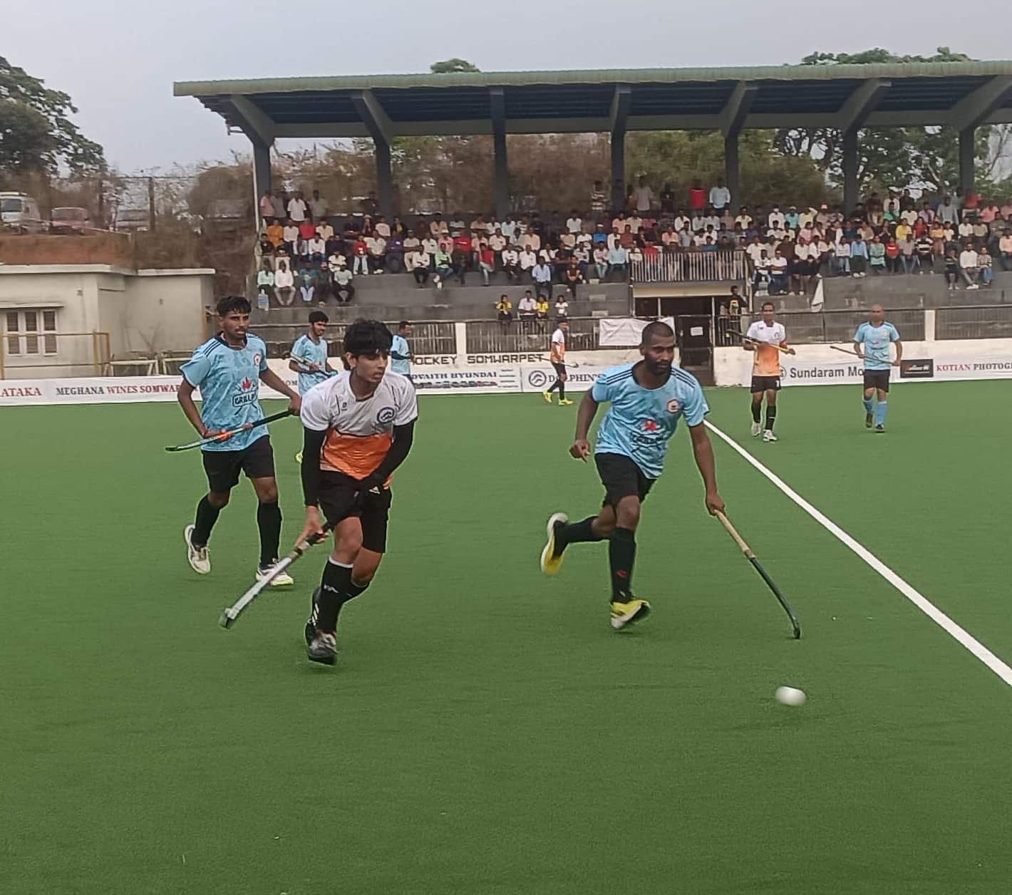 ಪಟ್ಟಣದ ಸರ್ಕಾರಿ ಪದವಿ ಪೂರ್ವ ಕಾಲೇಜು ಮೈದಾನದಲ್ಲಿ ಕಳೆದ ಮೂರು ದಿನಗಳಿಂದ ನಡೆಯುತ್ತಿರುವ ಜಿಲ್ಲಾ ಮಟ್ಟದ ಹಾಕಿ ಪಂದ್ಯಾವಳಿಯಲ್ಲಿ ಸ್ಥಳೀಯ ಡಾಲ್ಫಿನ್ಸ್ ತಂಡ ಹಾಗೂ ಯುಎಸ್ಸಿ ಬೇರಳಿನಾಡು ತಂಡಗಳು ಫೈನಲ್ ಪ್ರವೇಶಿಸಿವೆ. ಶನಿವಾರದಂದು ನಡೆದ ಮೊದಲ ಪಂದ್ಯಾಟದಲ್ಲಿ ಕೂಡಿಗೆ ಕ್ರೀಡಾ ನಿಲಯದ ತಂಡದ ಎದುರು ಬೇರಳಿ ನಾಡು ತಂಡ 2-1 ಗೋಲುಗಳ ಅಂತರದಲ್ಲಿ ಜಯ ಸಾಧಿಸಿ ಫೈನಲ್ ಗೆ ಲಗ್ಗೆ ಇಟ್ಟಿತು. ವಿಜೇತ ತಂಡದ ಪರ ಅಂತಾರಾಷ್ಟ್ರೀಯ ಆಟಗಾರ ಮಹ್ಮದ್ ರಾಹೀಲ್ ಮತ್ತು ವೆಂಕಟೇಶ್ ಕಂಜ ಗೋಲು ಗಳಿಸಿದರು. ಪರಾಜಿತ ತಂಡದ ಪರ ಲಿಖಿತ್ ಒಂದು ಗೋಲನ್ನು ಗಳಿಸಿದರು. ಎರಡನೇ ಸೆಮಿಫೈನಲ್ ಪಂದ್ಯಾಟದಲ್ಲಿ ಅತಿಥೇಯ ಡಾಲ್ಫಿನ್ಸ್ ತಂಡ ಕಕ್ಕಬ್ಬೆಯ ಮಲ್ಮ ತಂಡವನ್ನು ಟೈ ಬ್ರೇಕರ್ ನಲ್ಲಿ ಪರಾಜಯ ಗೊಳಿಸಿ ಎರಡನೇ ತಂಡವಾಗಿ ಫೈನಲ್ ಪ್ರವೇಶಿಸಿತು. ಕೊನೆಯ ಕ್ವಾರ್ಟರ್ ಆರಂಭವಾಗುವ ಮುನ್ನ 3-2 ಗೋಲುಗಳ ಮುನ್ನಡೆಯಲ್ಲಿದ್ದ ಡಾಲ್ಫಿನ್ಸ್ ತಂಡ, ನಾಲ್ಕನೇ ಕ್ವಾರ್ಟರ್ ನಲ್ಲಿ ಮಲ್ಮ ತಂಡದ ಆಟಗಾರ ಸುನಿಲ್ 42ನೇ ನಿಮಿಷದಲ್ಲಿ ಗೋಲು ಬಾರಿಸುವ ಮೂಲಕ 3-3 ಡ್ರಾ ಆಗುವಂತೆ ನೋಡಿಕೊಂಡರು. ನಂತರ ಜರುಗಿದ ರೋಚಕ ಟೈ ಬ್ರೇಕರ್ ನಲ್ಲಿ 4-3 ಗೋಲುಗಳ ಅಂತರದಲ್ಲಿ ಗೆಲುವು ಸಾಧಿಸುವ ಮೂಲಕ ಅತಿಥೇಯ ತಂಡ ಫೈನಲ್ ಪ್ರವೇಶಿಸಿತು. ರೋಚಕ ಘಟ್ಟದಲ್ಲಿ ಕೊನೆಯ ಪೆನಾಲ್ಟಿ ಯನ್ನು ಡಾಲ್ಫಿನ್ಸ್ ತಂಡದ ಗೋಲ್ ಕೀಪರ್ ಯಶಸ್ವಿಯಾಗಿ ತಡೆಯುವ ಮೂಲಕ ತಂಡಕ್ಕೆ ಗೆಲುವನ್ನು ತಂದುಕೊಡುವಲ್ಲಿ ಸಫಲರಾದರು.ಮಾಜಿ ನಾಯಕ ಎಂ.ಎಂ.ಸೋಮಯ್ಯರಿಂದ ಹಾಕಿ ವೀಕ್ಷಣೆ: ಡಾಲ್ಫಿನ್ಸ್ ಕ್ಲಬ್ ನಿಂದ ಗೌರವ ಅರ್ಪಣೆಶುಕ್ರವಾರದ ಪಂದ್ಯಾಟವನ್ನು ಪೋತ್ಸಾಹಿಸಲು ಭಾರತದ ಹಾಕಿ ತಂಡದ ಮಾಜಿ ನಾಯಕ, ಸೋಲ್ ಒಲಂಪಿಕ್ಸ್ ನಲ್ಲಿ ಭಾರತವನ್ನು ಪ್ರತಿನಿಧಿಸಿದ್ದ ಒಲಂಪಿಯನ್ ಕೊಡಗಿನ ಮನೆಯಪಂಡ ಸೋಮಯ್ಯ ಅವರು ಕ್ರೀಡಾಂಗಣಕ್ಕೆ ಆಗಮಿಸಿದ್ದರು. ಈ ಸಂದರ್ಭ ಅವರನ್ನು ಆತ್ಮೀಯವಾಗಿ ಸನ್ಮಾನಿಸಲಾಯಿತು.