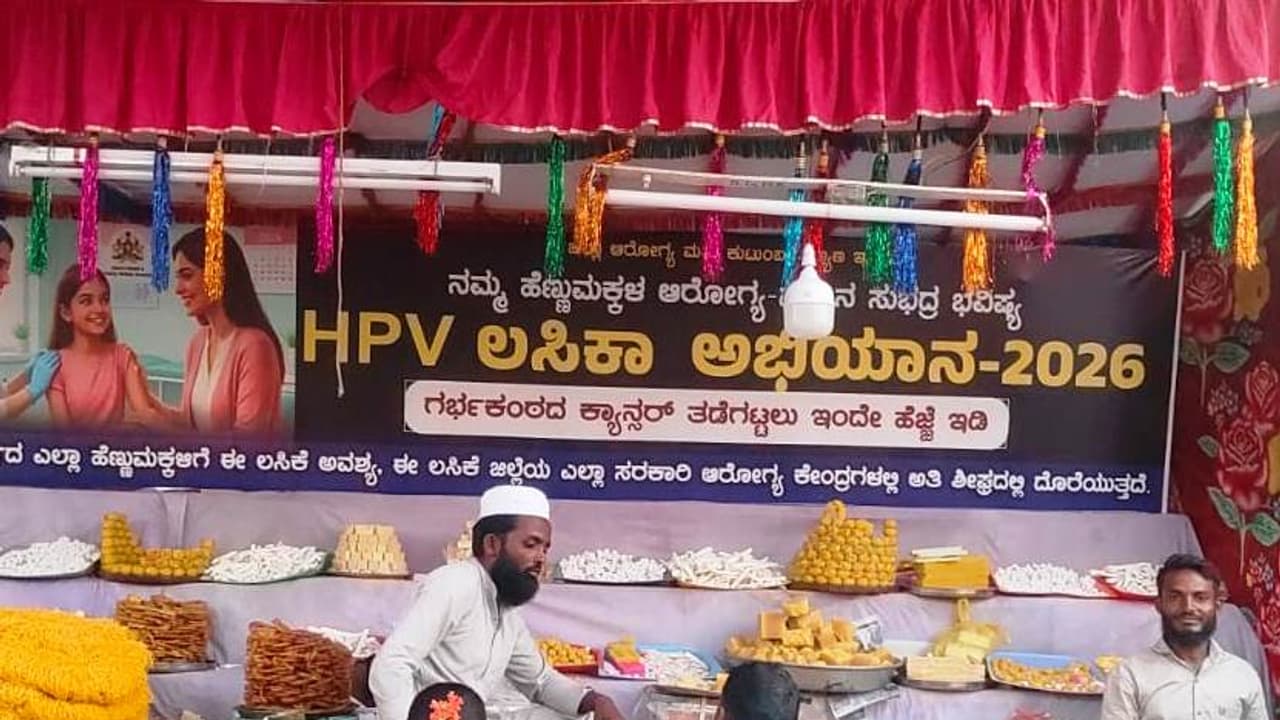 ಕನಕಗಿರಿ: 14 ವರ್ಷದೊಳಗಿನ ಎಲ್ಲ ಮಕ್ಕಳು ಎಚ್ಪಿವಿ ಲಸಿಕೆ ಹಾಕಿಸಿಕೊಳ್ಳುವಂತೆ ಆರೋಗ್ಯ ಇಲಾಖೆ ಕನಕಾಚಲಪತಿ ಜಾತ್ರೆಯ ಮಿಠಾಯಿ ಅಂಗಡಿಯೊಂದರಲ್ಲಿ ಪೋಸ್ಟರ್ ಅಂಟಿಸಿ ವಿಭಿನ್ನವಾಗಿ ಜಾಗೃತಿ ಮೂಡಿಸಲಾಗುತ್ತಿದೆ.