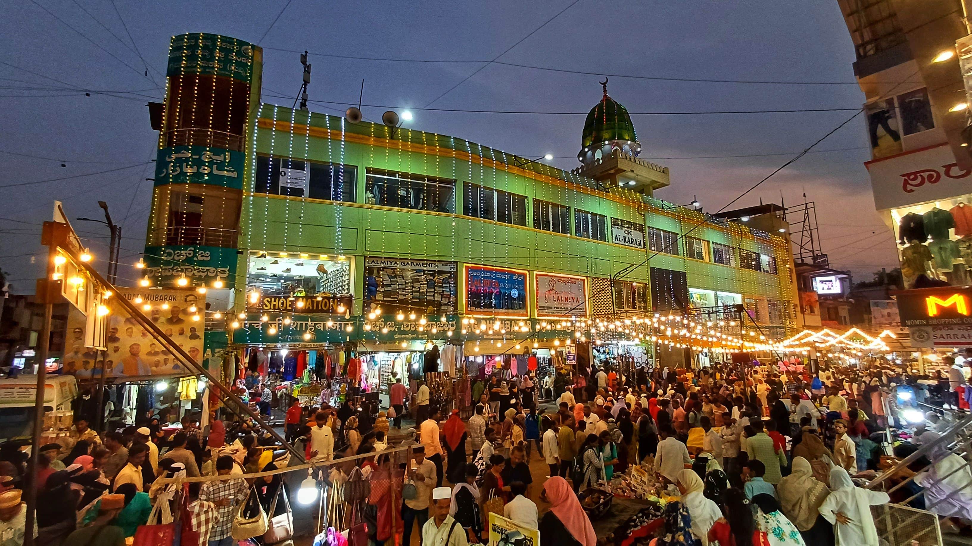 ರಂಜಾನ್ ಖರೀದಿಯೂ ಜೋರುತಿಂಗಳಿನಿಂದ ನಡೆಯುತ್ತಿರುವ ರಂಜಾನ್ ವ್ರತಾಚರಣೆ ಇನ್ನೇನು ಪೂರ್ಣಗೊಳ್ಳುವ ಹಂತಕ್ಕೆ ಬಂದಿದೆ. ಶುಕ್ರವಾರ ಇಲ್ಲವೇ ಶನಿವಾರ ರಂಜಾನ್ ಹಬ್ಬ ಆಚರಿಸುವ ಸಂಭವವಿರುವ ಹಿನ್ನೆಲೆಯಲ್ಲಿ ಮುಸಲ್ಮಾನ್ ಬಾಂಧವರು ಇಲ್ಲಿನ ಶಾಹ ಬಜಾರ್, ದುರ್ಗದಬೈಲ್ ಸೇರಿದಂತೆ ಪ್ರಮುಖ ಮಾರುಕಟ್ಟೆಗಳಲ್ಲಿ ಬಟ್ಟೆ, ಖಾದ್ಯಗಳಿಗೆ ಬೇಕಾದ ಸಾಮಗ್ರಿಗಳನ್ನು ಖರೀದಿಸಿದರು. ರಂಜಾನ್ ಹಬ್ಬ ಅಂಗವಾಗಿ ಇಲ್ಲಿನ ಶಾಹ ಬಜಾರ್, ದುರ್ಗದಬೈಲ್ ಪ್ರದೇಶದಲ್ಲಿ ಜಗಮಗಿಸುವ ವಿದ್ಯುತ್ ದೀಪಾಲಂಕಾರ ಮಾಡಿರುವುದು ಕಂಡುಬಂದಿತು.