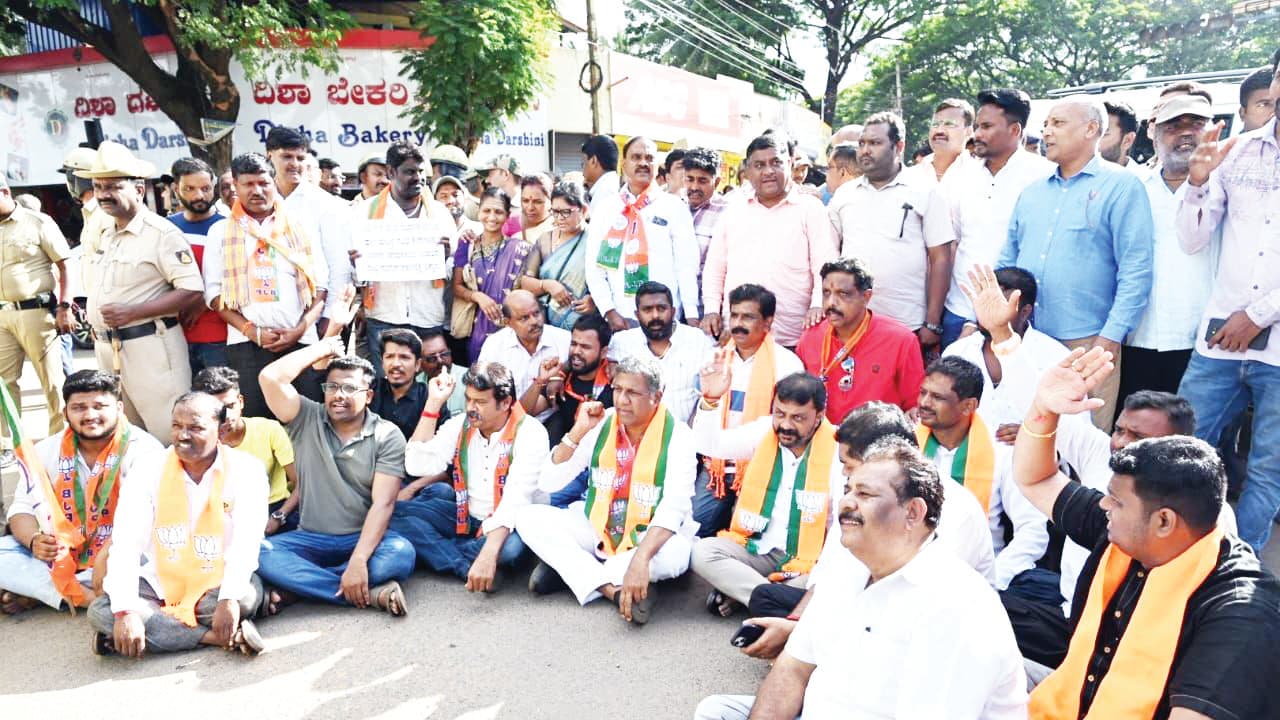 ಸವದತ್ತಿಯಿಂದ ಧಾರವಾಡಕ್ಕೆ ಮುಖ್ಯಮಂತ್ರಿ ಸಿದ್ದರಾಮಯ್ಯ ಆಗಮಿಸುತ್ತಿದ್ದಾರೆ ಎಂಬ ವಿಷಯ ತಿಳಿದ ಶಾಸಕ ಅರವಿಂದ ಬೆಲ್ಲದ ಹಾಗೂ ಮಾಜಿ ಶಾಸಕ ಅಮೃತ ದೇಸಾಯಿ ನೇತೃತ್ವದಲ್ಲಿ ಹತ್ತಾರು ಬಿಜೆಪಿ ಕಾರ್ಯಕರ್ತರು ನಗರದ ಶಿವಾಜಿ ವೃತ್ತದಲ್ಲಿ ಘೋಷಣೆ ಕೂಗಿ ಪ್ರತಿಭಟನೆ ನಡೆಸಿದರು.ಮುಖ್ಯಮಂತ್ರಿ ಕಾರಿಗೆ ಮುತ್ತಿಗೆ ಹಾಕುವ ವಿಷಯ ತಿಳಿದ ಪೊಲೀಸರು ಶಾಸಕರು, ಮಾಜಿ ಶಾಸಕರನ್ನು ಬಂಧಿಸಿ, ಕರೆದೊಯ್ದರು. ಆನಂತರ ಬಿಡುಗಡೆಗೊಳಿಸಲಾಯಿತು. ಇದಕ್ಕೂ ಮೊದಲು ಮಾತನಾಡಿದ ಶಾಸಕ ಅರವಿಂದ ಬೆಲ್ಲದ, 136 ಸೀಟು ಪಡೆದ ಅಧಿಕಾರಕ್ಕೆ ಬಂದ ಸಿದ್ದರಾಮಯ್ಯ ಸರ್ಕಾರ ಯಾರ ಕಾಳಜಿಗೆ ಅಧಿಕಾರ ನಡೆಸುತ್ತಿದೆ ಎಂದು ಪ್ರಶ್ನಿಸಿ, ಕೈ ಸರ್ಕಾರ ದೇಶವಿರೋಧಿ ಚಟುವಟಿಕೆಗೆ ಕುಮ್ಮಕ್ಕು ನೀಡುತ್ತಿದೆ ಎಂದು ದೂರಿದರು.