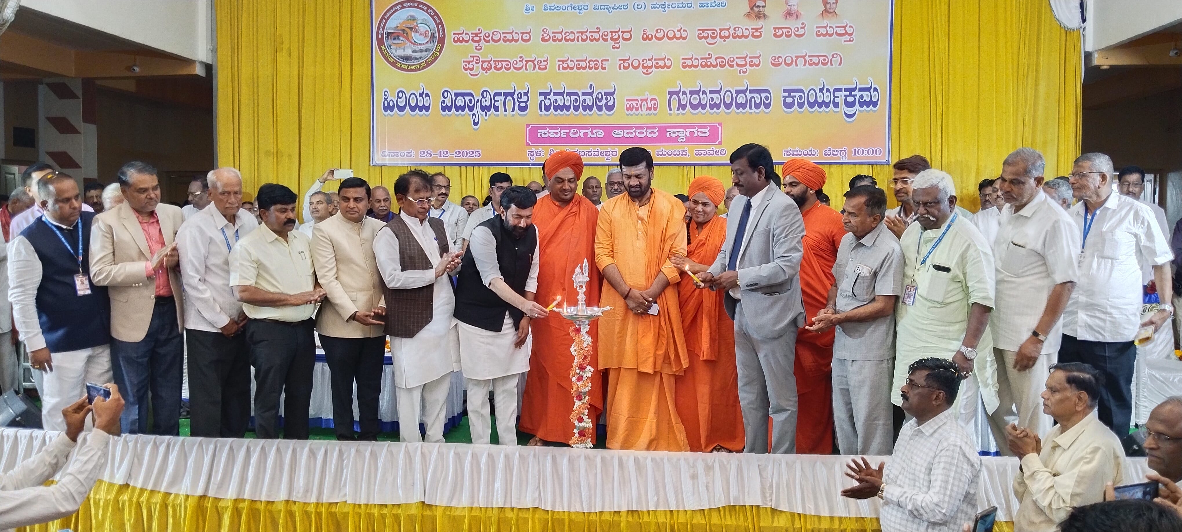 ಹುಕ್ಕೇರಿಮಠ ಶಿವಬಸವೇಶ್ವರ ಹಿರಿಯ ಪ್ರಾಥಮಿಕ ಶಾಲೆ ಮತ್ತು ಪ್ರೌಢ ಶಾಲೆಗಳ ಸುವರ್ಣ ಮಹೋತ್ಸವ ಪ್ರಯುಕ್ತ ಶಿವಬಸವೇಶ್ವರ ಕಲ್ಯಾಣ ಮಂಟಪದಲ್ಲಿ ಭಾನುವಾರ ಹಮ್ಮಿಕೊಂಡಿದ್ದ ಹಿರಿಯ ವಿದ್ಯಾರ್ಥಿಗಳ ಸಮಾವೇಶ ಹಾಗೂ ಗುರುವಂದನಾ ಕಾರ್ಯಕ್ರಮ ಉದ್ಘಾಟಿಸಿ ಅವರು ಮಾತನಾಡಿದರು. ಸಮಾಜ ಅಭಿವೃದ್ಧಿ ಆಗಬೇಕಾದರೆ ಶಿಕ್ಷಕರ ಪಾತ್ರ ಮಹತ್ವದ್ದಾಗಿದೆ. ಶಿಕ್ಷಕರು ಶಿಲ್ಪಿಗಳಾಗಿ ಮೂರ್ತಿಗಳನ್ನು ಕೆತ್ತನೆ ಮಾಡಿ ಸಮಾಜಕ್ಕೆ ಮಾದರಿ ವ್ಯಕ್ತಿಗಳನ್ನಾಗಿಸಲು ಶ್ರಮಿಸುತ್ತಾರೆ. ನಿಜವಾಗಲೂ ಈ ಗುರುವಂದನೆ ಮತ್ತು ಹಳೇ ವಿದ್ಯಾರ್ಥಿಗಳ ಸಮಾವೇಶ ಅರ್ಥಪೂರ್ಣ ಕಾರ್ಯಕ್ರಮವಾಗಿದೆ. ಹುಕ್ಕೇರಿಮಠ ಹಾಗೂ ಶಿವಲಿಂಗೇಶ್ವರ ವಿದ್ಯಾಪೀಠ ಲಕ್ಷಾಂತರ ವಿದ್ಯಾರ್ಥಿಗಳಿಗೆ ವಿದ್ಯಾದಾನ ನೀಡಿದೆ. ಜಾತಿ, ಧರ್ಮ, ಬೇಧ ಭಾವ ಇಲ್ಲದೆ ಎಲ್ಲರೂ ಒಂದು ಎನ್ನುವ ಭಾವನೆಯಲ್ಲಿ ಶಿಕ್ಷಣವನ್ನು ಧಾರೆ ಎರೆದಿದೆ. ಮುಂದಿನ ಯುವ ಜನಾಂಗ ಉತ್ತಮ ಶಿಕ್ಷಣ, ಸಂಸ್ಕಾರ ನೀಡುವಲ್ಲಿ ಮಾದರಿಯಾಗಿದೆ. ನಾನು ಸಹ ಶ್ರೀ ಮಠದ ಭಕ್ತನಾಗಿ ಸೇವೆ ಮಾಡಿಕೊಂಡು ಬಂದಿದ್ದೇನೆ. ಸಂಸ್ಥೆಯ ಅಭಿವೃದ್ಧಿ ಕಾರ್ಯಕ್ಕೆ ₹ 10 ಲಕ್ಷ , ಅನುದಾನ ಕೊಡುತ್ತೇನೆ ಎಂದು ವಾಗ್ದಾನ ಮಾಡಿದರು.ವಿಧಾನ ಪರಿಷತ್ ಸದಸ್ಯ ಪ್ರೊ. ಎಸ್.ವಿ. ಸಂಕನೂರ ಮಾತನಾಡಿ, ಜಗತ್ತಿನ ಯಾವುದೇ ರಾಷ್ಟ್ರಕ್ಕೂ ಹೋದರೂ ಗುರುಗಳಿಗೆ ಬಹುದೊಡ್ಡ ಸ್ಥಾನವಿದೆ. ಶಿಕ್ಷಕರು ಪ್ರಾಮಾಣಿಕ, ಶ್ರದ್ಧೆಯಿಂದ ಮಕ್ಕಳಿಗೆ ಪಾಠ ಮಾಡಬೇಕು. ನಮ್ಮ ಕರ್ತವ್ಯವನ್ನು ನಾವು ಸರಿಯಾಗಿ ಮಾಡಬೇಕು. ವಿದ್ಯಾರ್ಥಿಗಳು, ಪೋಷಕರು ಉತ್ತಮ ಶಿಕ್ಷಕರನ್ನು ಯಾವಾಗಲು ನೆನಪಿನಲ್ಲಿ ಇಟ್ಟುಕೊಳ್ಳುತ್ತಾರೆ. 21ನೇ ಶತಮಾನ ಜ್ಞಾನ ಮತ್ತು ಕೌಶಲ್ಯದ ಯುಗವಾಗಿದೆ. ಇವೆರಡು ಇದ್ದಲ್ಲಿ ಸಮಾಜದಲ್ಲಿ ಗೌರವಯುತ ಸ್ಥಾನಮಾನ ಸಿಗುತ್ತದೆ ಎಂದರು.ನಿವೃತ್ತ ಶಿಕ್ಷಕರನ್ನು ಹಳೆ ವಿದ್ಯಾರ್ಥಿಗಳು ಸನ್ಮಾನಿಸಿ ಗೌರವಿಸಿ ಗುರುವಂದನೆ ಸಲ್ಲಿಸಿದರು. ಹುಕ್ಕೇರಿಮಠದ ಸದಾಶಿವ ಸ್ವಾಮೀಜಿ ಸಾನ್ನಿಧ್ಯ ವಹಿಸಿದ್ದರು. ಕುಮಾರ ಮಹಾಸ್ವಾಮೀಜಿ, ಅಭಿನವ ಸಿದ್ದಾರೂಢ ಸ್ವಾಮೀಜಿ, ಚೆನ್ನಬಸವ ಸ್ವಾಮೀಜಿ, ಶಿವಬಸವ ಸ್ವಾಮೀಜಿ, ಗುರುಬಸವ ದೇವರು, ಡಾ. ಓಂಕಾರ ಕಾಕಡೆ, ಎಂ.ಎಚ್ ಪಾಟೀಲ, ಎಸ್.ಎಸ್ ಮುಷ್ಠಿ, ವೀರಣ್ಣ ಅಂಗಡಿ, ಜಗದೀಶ ತುಪ್ಪದ, ಬಸವರಾಜ ಅರಬಗೊಂಡ, ಮಲ್ಲಿಕಾರ್ಜುನ ಸಾತೆನಹಳ್ಳಿ, ಡಾ.ಬಸವರಾಜ ವೀರಾಪುರ, ಡಾ. ಸಂಜಯ ಡಾಂಗೆ, ಎಸ್.ಎಫ್.ಎನ್. ಗಾಜಿಗೌಡ್ರ, ಪ್ರಕಾಶ ಮತ್ತಿಹಳ್ಳಿ ಸೇರಿದಂತೆ ನಿವೃತ್ತ ಶಿಕ್ಷಕರು, ಗಣ್ಯರು ಉಪಸ್ಥಿತರಿದ್ದರು.ಅನ್ನ, ಅರಿವು ಮತ್ತು ಆಶ್ರಯ ನೀಡಿ ತ್ರಿವಿಧ ದಾಸೋಹದ ಮೂಲಕ ಮಧ್ಯಮ ವರ್ಗವನ್ನು ಸುಧಾರಿಸಿದ ಹೆಗ್ಗಳಿಕೆ ಜೊತೆಗೆ ಎಲ್ಲ ರಂಗಗಳಲ್ಲಿ ವಿದ್ಯಾರ್ಥಿಗಳನ್ನು ನೀಡಿ ನಾಡನ್ನು ಸಂಪನ್ಮೂಲಗೊಳಿಸಿದ ಶ್ರೇಯಸ್ಸು ಶ್ರೀಮಠದ್ದು. ಈ ಸುವರ್ಣ ಸಂದರ್ಭದಲ್ಲಿ ಒಂದು ಸಾವಿರ ವಿದ್ಯಾರ್ಥಿಗಳಿಗೆ ವಸತಿಯುತ ಉಚಿತ ಪ್ರಸಾದ ನಿಲಯದ ವಿದ್ಯಾರ್ಥಿ ಭವನದ ಮೊದಲ ಮಹಡಿ ಒಂದು ವರ್ಷದೊಳಗೆ ಉದ್ಘಾಟನೆಗೊಳ್ಳಲಿದೆ ಎಂದು ಹುಕ್ಕೇರಿಮಠದ ಸದಾಶಿವ ಸ್ವಾಮೀಜಿ ಹೇಳಿದರು.ಇಂದಿನ ಕಾರ್ಯಕ್ರಮ ಹಳೆಯ ಎಲ್ಲ ವಿದ್ಯಾರ್ಥಿಗಳಲ್ಲಿ ಸಂಚಲನ ಮೂಡಿಸಿ ಅನನ್ಯ ಅನುಭೂತಿ ಮೂಡಿಸಿದೆ. ಸಾಮಾಜಿಕ, ಸಾಂಸ್ಕೃತಿಕ, ಆರ್ಥಿಕ ಹಿನ್ನೆಲೆಯಿಂದ ಬಂದಿದ್ದ ನಮ್ಮಂಥ ಬಡ ವಿದ್ಯಾರ್ಥಿಗಳಿಗೆ ಶ್ರೀಮಠ ಶಿಕ್ಷಣವನ್ನು ಕೊಡುಗೆಯಾಗಿ ನೀಡಿದೆ. ಪ್ರೀತಿ, ವಿಶ್ವಾಸ, ಕಾಳ