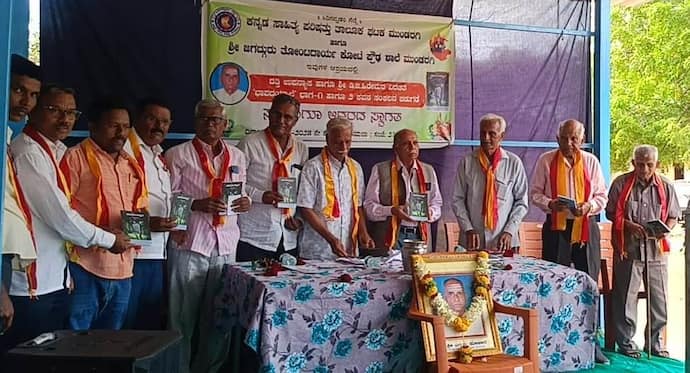 ಲೇಖಕ ಡಿ.ಜಿ. ಹಿರೇಮಠ, ಪುರಸಭೆ ಉಪಾಧ್ಯಕ್ಷ ನಾಗೇಶ ಹುಬ್ಬಳ್ಳಿ ಮಾತನಾಡಿದರು. ತಾಲೂಕು ಕಸಾಪ ಅಧ್ಯಕ್ಷ ಎಂ.ಜಿ. ಗಚ್ಚಣ್ಣವರ ಅಧ್ಯಕ್ಷತೆ ವಹಿಸಿ ಮಾತನಾಡಿದರು.ಕಾರ್ಯಕ್ರಮದಲ್ಲಿ ಸಿ.ಬಿ. ಚನ್ನಳ್ಳಿ, ಎಸ್.ಬಿ.ಕೆ. ಗೌಡರ, ಪರಮೇಶ, ಎಸ್.ಎಂ. ಪೂಜಾರ, ಆರ್.ವೈ. ಸಿರಸಗಿ, ಆರ್.ಎಲ್. ಪೊಲೀಸಪಾಟೀಲ, ಪ್ರಹ್ಲಾದ ಹೊಸಮನಿ, ಆರ್.ಬಿ. ಹಕ್ಕಂಡಿ, ವೆಂಕಟೇಶ ಗುಗ್ಗರಿ, ಪಾಲಾಕ್ಷಿ ಗಣದಿನ್ನಿ, ಎಂ.ಐ. ಮುಲ್ಲಾ, ಕೃಷ್ಣಾ ಸಾವುಕಾರ, ಶ್ರೀನಿವಾಸ ಕಟ್ಟಿಮನಿ, ಎಸ್.ಸಿ. ಚಕ್ಕಡಿಮಠ ಉಪಸ್ಥಿತರಿದ್ದರು. ಮಂಜುನಾಥ ಮುಧೋಳ ಪ್ರಾಸ್ತಾವಿಕವಾಗಿ ಮಾತನಾಡಿದರು. ಶಾಲಾ ಮುಖ್ಯೋಪಾಧ್ಯಾಯ ಮಂಜುನಾಥ ತೆಗ್ಗಿನಮನಿ ಸ್ವಾಗತಿಸಿದರು. ಆರ್.ವಿ. ಅರ್ಕಸಾಲಿ ನಿರೂಪಿಸಿ, ವಂದಿಸಿದರು.