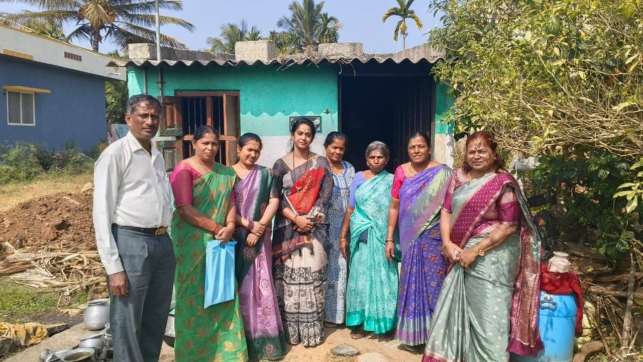 27ಕೆಕೆಡಿಯು1.ಸಂಜೀವಿನಿ ಮಹಿಳಾ ಒಕ್ಕೂಟ ಮತ್ತು ನಾರಿ ಶಕ್ತಿ ಬಳಗದಿಂದ ತರೀಕೆರೆ ಸಮೀಪದ ನೇರಳೆಕೆರೆ ಗ್ರಾ.ಪಂ. ಆವರಣದಲ್ಲಿ ಬಡ ಕುಟುಂಬದ 75 ವರ್ಷಕ್ಕೂ ಹೆಚ್ಚು ವಯಸ್ಸಾದ ಮಹಿಳೆಯ ಮನೆ ನೆಲಕ್ಕೆ ಮ್ಯಾಟ್ ಹಾಕಿಸಿಕೊಟ್ಟ ಮಾನಮೀಯತೆ ಮೆರೆದರು.