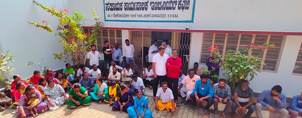 ಮಾಜಿ ಸಚಿವ ಸಿ.ಎಸ್.ಪುಟ್ಟರಾಜು ಅವರ ಅಧಿಕಾರ ಅವಧಿಯಲ್ಲಿ ಮಂಜೂರಾಗಿದ್ದ ಪಟ್ಟಣದ ಐದು ದೀಪದ ವೃತ್ತದಿಂದ ಹಾರೋಹಳ್ಳಿಯವರೆಗೆ ರಸ್ತೆ ಮಧ್ಯೆ ವಿದ್ಯುತ್ ಬೀದಿದೀಪ ಅಳವಡಿಸುವ ಕಾಮಗಾರಿಯನ್ನು ಶಾಸಕರು ಹಾಗೂ ಅಧಿಕಾರಿಗಳು ಬೇರೆಡೆಗೆ ವರ್ಗಾಯಿಸಲು ಹುನ್ನಾರ ನಡೆಸುತ್ತಿದ್ದಾರೆ ಎಂದು ಆರೋಪಿಸಿ ಪಟ್ಟಣದ ಲೋಕೋಪಯೋಗಿ ಕಚೇರಿಗೆ ಹಾರೋಹಳ್ಳಿ ಗ್ರಾಮದ ನಿವಾಸಿಗಳು ಹಾಗೂ ಜೆಡಿಎಸ್ ಕಾರ್ಯಕರ್ತರು ಮುತ್ತಿಗೆ ಹಾಕಿ ಪ್ರತಿಭಟನೆ ನಡೆಸಿದರು.ಪಟ್ಟಣದ ಲೋಕೋಪಯೋಗಿ ಇಲಾಖೆ ಎದುರು ಸೇರಿದ ಕಾರ್ಯಕರ್ತರು, ಮುಖಂಡರು, ಲೋಕೋಪಯೋಗಿ ಇಲಾಖೆ ಅಧಿಕಾರಿಗಳ ವಿರುದ್ಧ ಘೋಷಣೆ ಕೂಗಿದರು. ಸಿ.ಎಸ್.ಪುಟ್ಟರಾಜು ಸಚಿವರಾಗಿದ್ದಾಗ ಪಟ್ಟಣದ ಐದು ದೀಪ ವೃತ್ತದಿಂದ ತಾಲೂಕಿನ ಗಡಿಭಾಗದವರೆಗೂ ಕೋಟ್ಯಂತರ ರು. ವೆಚ್ಚದಲ್ಲಿ ರಸ್ತೆ ಅಭಿವೃದ್ಧಿ ಪಡಿಸಿದ್ದಾರೆ. ಪಟ್ಟಣದಿಂದ ಹಾರೋಹಳ್ಳಿವರೆಗೂ ರಸ್ತೆ ಮಧ್ಯೆ ವಿದ್ಯುತ್ ಬೀದಿ ದೀಪ ಅಳವಡಿಕೆಗಾಗಿ 2 ಕೋಟಿ ರು. ಅನುದಾನ ಬಿಡುಗಡೆ ಮಾಡಿಸಿದ್ದಾರೆ ಎಂದರು.