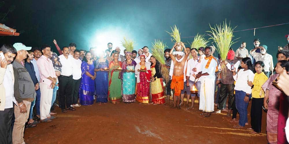 ಕನ್ನಡಪ್ರಬ ವಾರ್ತೆ ನಾಪೋಕ್ಲುಕೊಡಗಿನ ಸುಗ್ಗಿಯ ಹಬ್ಬವಾದ ಧಾನ್ಯ ಲಕ್ಷ್ಮೀಯನ್ನು ಬರಮಾಡಿಕೊಳ್ಳುವ ಹುತ್ತರಿ ಹಬ್ಬ ವನ್ನು ಗುರುವಾರ ಜಿಲ್ಲೆಯಾದ್ಯಂತ ಸಡಗರ ಸಂಭ್ರಮ ಹಾಗೂ ಶ್ರದ್ಧಾ ಭಕ್ತಿಯಿಂದ ಆಚರಿಸಲಾಯಿತು. ಕಕ್ಕಬ್ಬೆಯ ಪಾಡಿ ಶ್ರೀ ಇಗ್ಗುತ್ತಪ್ಪ ಸನ್ನಿಧಿಯಲ್ಲಿ ಗುರುವಾರ ರಾತ್ರಿ ಹುತ್ತರಿ ಹಬ್ಬದ ಮೊದಲ ಪೂಜೆ ನಡೆಯಿತು. ಬಳಿಕ ಜಿಲ್ಲೆಯಾದ್ಯಂತ ವಿವಿಧ ದೇವಾಲಯಗಳಲ್ಲಿ ಭತ್ತದ ಕದಿರಿಗೆ ಸಾಂಪ್ರದಾಯಿಕ ಪೂಜೆ ನೆರವೇರಿತು. ಪಾಡಿ ಇಗ್ಗುತ್ತಪ್ಪ ಸನ್ನಿಧಿಯಲ್ಲಿ ದೇವಾಲಯದ ಸುತ್ತಮುತ್ತಲಿನ ಪೊಂಗೇರ, , ಕೋಳೆಯಂಡ, ಬೊಳ್ಳನಮ್ಮಂಡ, ಹಳ್ಳಿ ಮಾಡ ಸೇರಿದಂತೆ ಅಮ್ಮಂಗೇರಿಯ ಸುತ್ತಲಿನ ಕುಟುಂಬದವರು ಊರಿನ, ಪರವೂರಿನ ಭಕ್ತರು ಪಾಲ್ಗೊಂಡಿದ್ದರು. ದೇವಾಲಯದ ಸುತ್ತಮುತ್ತಲಿನ ವಿವಿಧ ಕುಟುಂಬಗಳ ಮಹಿಳೆಯರು ತಳಿಯಕ್ಕಿ ಬೊಳಕ್ನೊಂದಿಗೆ ದೇವಾಲಯಕ್ಕೆ ಆಗಮಿಸಿದರು. ಬಳಿಕ ಕುಡಿಯರ ಕಾವೇರಪ್ಪ ಮತ್ತು ಸಂಗಡಿಗರಿಂದ ದುಡಿಕೊಟ್ ಪಾಟ್ ನುಡಿಸಲಾಯಿತು. ಬಳಿಕ ಹಿರಿಯರಾದ ಪೊಂಗೇರ ಉಲ್ಲಾಸ್ ದೇವರ ನಡೆಯಲ್ಲಿ ನಾಡಿನ ಸುಭಿಕ್ಷೆಗಾಗಿ ವಿಶೇಷ ಪ್ರಾರ್ಥನೆ ಸಲ್ಲಿಸಿದರು. ಆನಂತರ ಜಾಗಟೆ, ಡೋಲು ಸಹಿತ ಬೆಳ್ಳಿಯ ಬಿಂದಿಗೆಯೊಂದಿಗೆ ಮುಕ್ಕಾಟಿ ಸುಬ್ರಮಣಿ ಹಾಗೂ ವಿವಿಧ ಕುಟುಂಬಗಳ ಮಹಿಳೆಯರು ತಳಿಯಕ್ಕಿ ಬೊಳಕ್ನೊಂದಿಗೆ ಭಕ್ತಾದಿಗಳು ಪೊಂಗೇರ ಅಪ್ಪಣ್ಣನವರ ಮಾಬಲ್ಯ ಗದ್ದೆಗೆ ತೆರಳಿ ಪೂಜೆ ವಿಧಿವಿಧಾನ ನೆರವೇರಿಸಿದರು. ನಿಗದಿತ ಸಮಯದಲ್ಲಿ ಕುಶಾಲು ತೋಪು ಹಾರಿಸಿ ಪೊಲಿಪೊಲಿ ಬಾ ಉದ್ಘೋಷಗಳನಡುವೆ ಪಟಾಕಿಗಳ ಮೊರೆಕದೊಂದಿಗೆ ಕದಿರನ್ನು ಮುಕ್ಕಾಟಿ ಸುಬ್ರಮಣಿ ಅವರು ಭತ್ತದ ಕದಿರುಗಳನ್ನು ಕೊಯ್ದು ಇತರರ ಕೈಗೆ ಕೊಟ್ಟರು . ನಂತರ ಭತ್ತದ ಕದಿರಿನೊಂದಿಗೆ ದೇವಾಲಯಕ್ಕೆ ಆಗಮಿಸಿದ ಭಕ್ತರು ದೇವಾಲಯದ ಅಶ್ವತ್ಥ ಕಟ್ಟೆಗೆ ಪ್ರದಕ್ಷಿಣೆ ಬಂದು ತೆನೆಗಳನ್ನು ಅರ್ಚಕರಿಗೆ ಒಪ್ಪಿಸಲಾಯಿತು. ಬಳಿಕ ದೇವಾಲಯದ ನಮಸ್ಕಾರ ಮಂಟಪದಲ್ಲಿರಿಸಿ ವಿಶೇಷ ಧಾನ್ಯಲಕ್ಷ್ಮಿ ಪೂಜೆಯನ್ನು ಅರ್ಚಕರಾದ ಜಗದೀಶ್, ಅರ್ಚಕ ವೃಂದ , ಶ್ರೀಕಾಂತ್ ದೇವಾಲಯದಲ್ಲಿ ಪೂಜಾ ಕಾರ್ಯಗಳನ್ನು ನೆರವೇರಿಸಿದರು. ಅನಂತರ ಪ್ರಥಮವಾಗಿ ಕದಿರು ದೇವರ ಗರ್ಭಗುಡಿ ಸೇರಿದಂತೆ ದೇವಾಲಯದ ವಿವಿಧ ಕಡೆಯಲ್ಲಿ ಕಟ್ಟಲಾಯಿತು. ಬಳಿಕ ಭಕ್ತರಿಗೆ ಕದಿರು, ತೀರ್ಥಪ್ರಸಾದವನ್ನು ವಿತರಿಸಲಾಯಿತು. ದೇವಾಲಯದಲ್ಲಿ ನಡೆದ ಆಚರಣೆಯಲ್ಲಿ ಊರಿನ, ಪರವೂರಿನ ಭಕ್ತರು ಹೆಚ್ಚಿನ ಸಂಖ್ಯೆಯಲ್ಲಿ ಪಾಲ್ಗೊಂಡಿದ್ದರು. ಸುಬ್ರಹ್ಮಣ್ಯ ಯುವಕ ಸಂಘದ ವತಿಯಿಂದ ತಳಿರು ತೋರಣ ವ್ಯವಸ್ಥೆಯನ್ನು ಮಾಡಲಾಗಿತ್ತು.ಬಳಿಕ ದೇವಾಲಯದ ಸುತ್ತಮುತ್ತಲಿನ ಕುಟುಂಬಸ್ಥರು ತಮ್ಮ ತಮ್ಮ ಮನೆಗೆ ತೆರಳಿ ಅವರ ಗದ್ದೆಯಿಂದ ಕದಿರು ತೆಗೆದು ಪಟಾಕಿ ಬಾಣ, ಬಿರುಸು, ಹಾಗೂ ಹುತ್ತರಿಯ ವಿಶೇಷ ತಿಂಡಿ, ತಿನಿಸು ಹಾಗೂ ಹೊಸ ಅಕ್ಕಿಯಿಂದ ಮಾಡಿದ ಪಾಯಸ ಗಳೊಂದಿಗೆ ಹುತ್ತರಿ ಹಬ್ಬವನ್ನು ವಿಶೇಷವಾಗಿ ಆಚರಿಸಿದರು.
