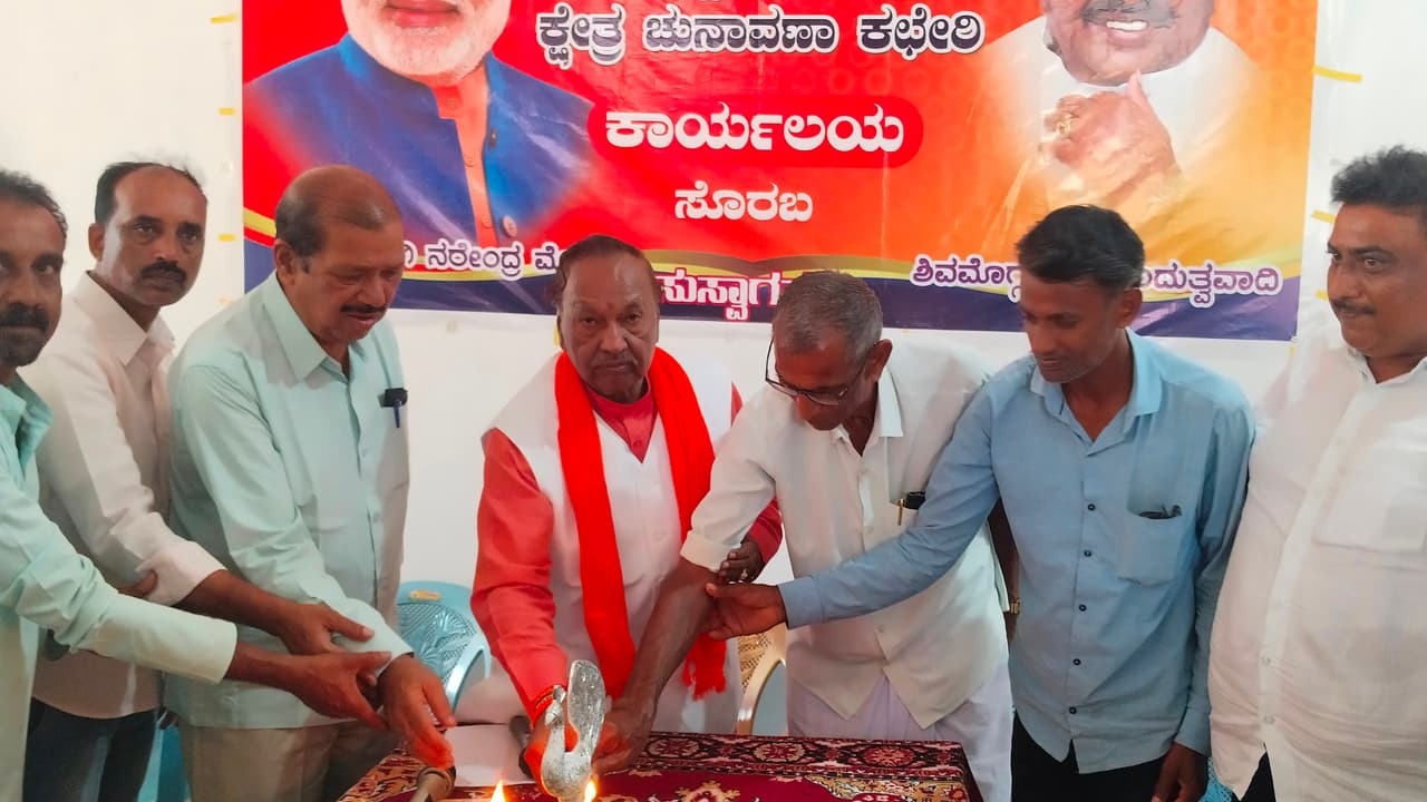 ಸೊರಬ ಪಟ್ಟಣದ ಶ್ರೀ ರಂಗನಾಥ ದೇವಸ್ಥಾನ ಹತ್ತಿರ ಶಿವಮೊಗ್ಗ ಲೋಕಸಭಾ ಕ್ಷೇತ್ರದ ರಾಷ್ಟ್ರ ಭಕ್ತರ ಬಳಗದ ಕಚೇರಿಯನ್ನು ಬಿಜೆಪಿ ಬಂಡಾಯ ಅಭ್ಯರ್ಥಿ ಕೆ.ಎಸ್. ಈಶ್ವರಪ್ಪ ಉದ್ಘಾಟಿಸಿದರು.