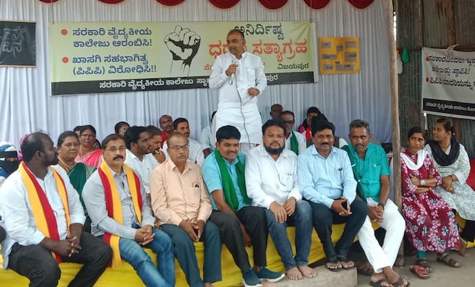 ಪಿಪಿಪಿ ಮಾದರಿ ನಮಗೆ ಗೊತ್ತಿರಲಿಲ್ಲ. ವೈದ್ಯಕೀಯ ಸಚಿವ ಶರಣಪ್ರಕಾಶ ಪಾಟೀಲ ಪಿಪಿಪಿ ಕುರಿತು ಸದನದಲ್ಲಿ ಚರ್ಚೆ ಮಾಡಿದಾಗಲೇ ನಮಗೆ ಗೊತ್ತಾಯಿತು. ಮುಂದಿನ ಕ್ಯಾಬಿನೆಟ್ ಸಭೆ ವಿಜಯಪುರದಲ್ಲಿ ನಡೆಯಲಿದೆ. ಇದರ ಬಗ್ಗೆ ನಾನು ಸಭೆಯಲ್ಲಿ ಮಾತನಾಡುತ್ತೇನೆ. ಮುಖ್ಯಮಂತ್ರಿ ಮತ್ತು ಉಪಮುಖ್ಯಮಂತ್ರಿಗಳ ಜೊತೆ ಮಾತನಾಡುತ್ತೇನೆ. ಸರ್ಕಾರದ ಕಣ್ಣು ತೆರೆಸುವ ಕೆಲಸ ಮಾಡುತ್ತೇನೆ ಎಂದು ದೇವರಹಿಪ್ಪರಗಿ ಶಾಸಕ ರಾಜುಗೌಡ ಪಾಟೀಲ ಹೇಳಿದರು.17ನೇ ದಿನಕ್ಕೆ ಕಾಲಿಟ್ಟ ಸರ್ಕಾರಿ ವೈದ್ಯಕೀಯ ಕಾಲೇಜು ಸ್ಥಾಪನೆಗಾಗಿ ಅನಿರ್ದಿಷ್ಟ ಧರಣಿ ಸತ್ಯಾಗ್ರಹದ ಸ್ಥಳಕ್ಕೆ ಭೇಟಿ ನೀಡಿ, ಹೋರಾಟಗಾರರನ್ನು ಉದ್ದೇಶಿಸಿ ಮಾತನಾಡಿದ ಅವರು, 150 ಎಕರೆ ಜಮೀನು ಹೊಂದಿರುವ ಏಕೈಕ ಜಿಲ್ಲೆ ನಮ್ಮದು. ಸರ್ಕಾರಿ ವೈದ್ಯಕೀಯ ಕಾಲೇಜು ಸ್ಥಾಪಿಸಲು ಎಲ್ಲಾ ಅವಕಾಶಗಳಿವೆ. ಕಳೆದ 17 ದಿನಗಳಿಂದ ನ್ಯಾಯಯುತವಾದ ಹೋರಾಟ ಮಾಡುತ್ತಿದ್ದೀರಿ. ಜಿಲ್ಲೆಯ ಶಾಸಕನಾಗಿ ನನ್ನ ಜವಾಬ್ದಾರಿಯನ್ನು ನಿಭಾಯಿಸುತ್ತೇನೆ ನಿಮ್ಮ ಹೋರಾಟದಲ್ಲಿ ನಾನು ನಿಮ್ಮೊಂದಿಗೆ ಇರುತ್ತೇನೆ ಎಂದು ಭರವಸೆ ನೀಡಿದರು.