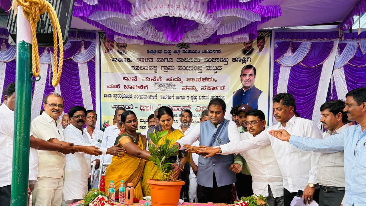 ಅವರು ತಾೂಲಕಿನ ಕಾನಹೊಸಹಳ್ಳಿ ಸಮೀಪದ ಸೂಲದಹಳ್ಳಿಯಲ್ಲಿ ಮನೆ ಮನೆಗೆ ಶಾಸಕರು, ಮನೆ ಬಾಗಿಲಿಗೆ ನಮ್ಮ ಸರ್ಕಾರ ಮತ್ತು ಅಂಗನವಾಡಿ ಶಾಲೆಗಳಿಗೆ ಇ ಸ್ವತ್ತು ವಿತರಣಾ ಸಮಾರಂಭ ಕಾರ್ಯಕ್ರಮಕ್ಕೆ ಚಾಲನೆ ನೀಡಿ ಮಾತನಾಡಿದರು.ಗ್ಯಾರಂಟಿ ಯೋಜನೆ ಸೇರಿದಂತೆ ಸರ್ಕಾರದ ಸವಲತ್ತುಗಳು ಜನತೆಗೆ ತಲುಪಿಸುವ ಉದ್ದೇಶವಿದೆ, ಕ್ಷೇತ್ರದಲ್ಲಿ ನಿರುದ್ಯೋಗ, ವಸತಿ ಸೌಕರ್ಯಗಳನ್ನು ಹಂತ ಹಂತವಾಗಿ ಬಗೆಹರಿಸಲು ಸೂಕ್ತ ಕ್ರಮಕೈಗೊಳಲಾಗುವುದು ಜತೆಗೆ ರಸ್ತೆ, ಚರಂಡಿ ಮೂಲಭೂತ ಸೌಕರ್ಯಗಳಿಗೆ ಈಗಾಗಲೇ ಸಾಕಷ್ಟು ಅನುದಾನ ತಂದು ಕೆಲಸ ಮಾಡಿರುವೆ. ಈಗಾಗಲೇ ಕಾಮಗಾರಿಗಳು ತ್ವರಿತವಾಗಿ ನಡೆಯಲಿದ್ದು ಇನ್ನು ಹೆಚ್ಚಿನ ಕಾಳಜಿವಹಿಸಿ ಕೆಲಸ ಮಾಡುವೆ ಎಂದರು.ಇ ಸ್ವತ್ತು ಹಸ್ತಾಂತರ: