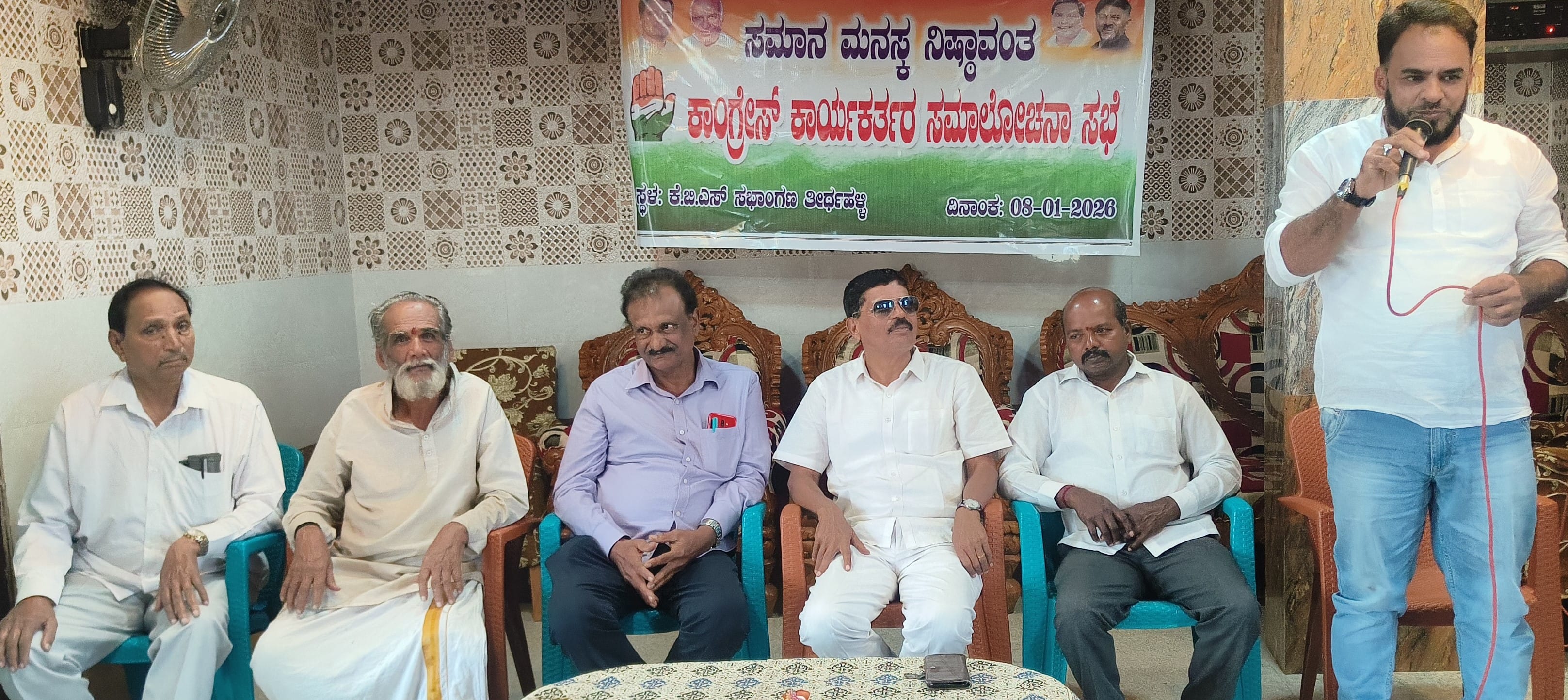 ಸ್ಥಳೀಯ ಪಪಂಯ ಅಧ್ಯಕ್ಷ ಚುನಾವಣೆಯ ನಂತರದಲ್ಲಿ ಕಾಂಗ್ರೆಸ್ ಪಕ್ಷದೊಳಗೆ ಉಂಟಾಗಿರುವ ಭಿನ್ನಾಭಿಪ್ರಾಯ ಹಿನ್ನೆಲೆಯಲ್ಲಿ ಗುರುವಾರ ಪಟ್ಟಣದ ಕೆಬಿಎಸ್ ಕಾಂಪ್ಲೆಕ್ಷಿನಲ್ಲಿ ಡಿ.ಎಸ್.ವಿಶ್ವನಾಥಶೆಟ್ಟಿ ಅಧ್ಯಕ್ಷತೆಯಲ್ಲಿ ಸಮಾನ ಮನಸ್ಕ ನಿಷ್ಠಾವಂತ ಕಾಂಗ್ರೆಸ್ ಕಾರ್ಯಕರ್ತರ ಸಮಾಲೋಚನಾ ಸಭೆ ನಡೆಯಿತು.