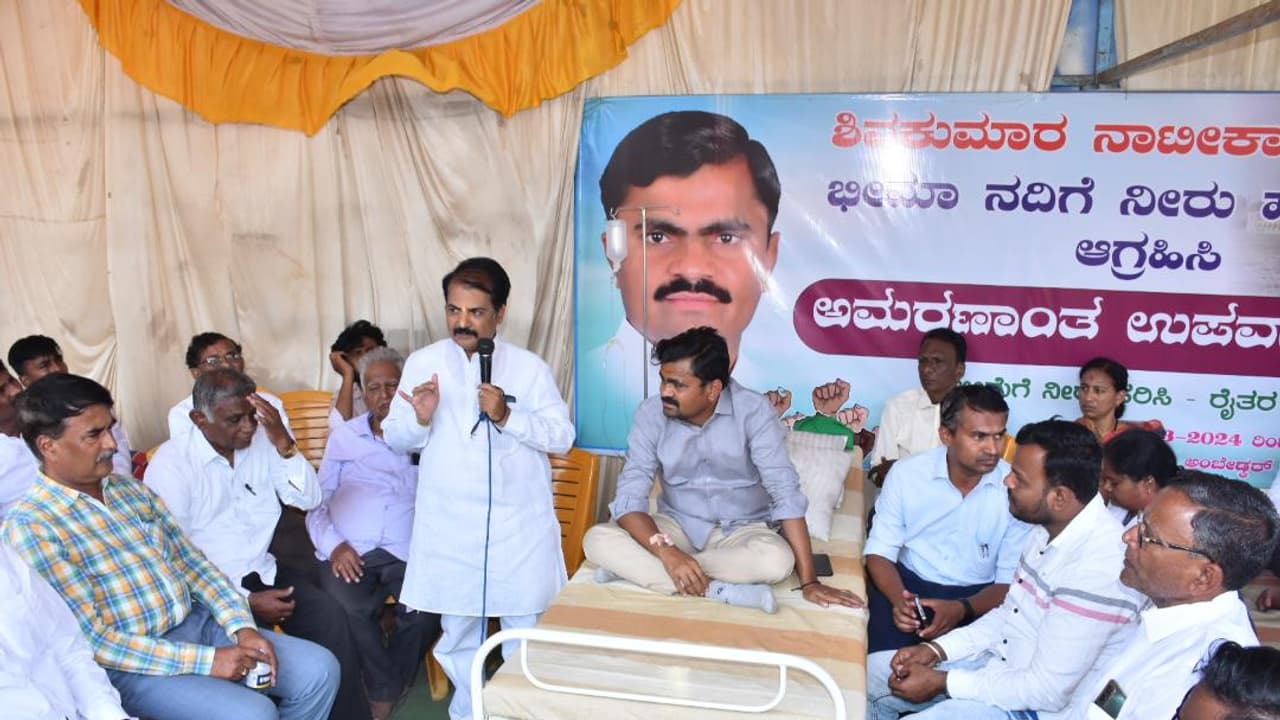 ಜನ ಜಾನುವಾರು ಕುಡಿಯುವ ನೀರಿಗಾಗಿ ಬತ್ತಿ ಹೋಗಿರುವ ಭೀಮಾ ನದಿಗೆ ಉಜನಿಯಿಂದ 5 ಟಿಎಂಸಿ ನೀರು ಹರಿಸಬೇಕು ಎಂದು ಆಗ್ರಹಿಸಿ ಶುರುವಾಗಿರುವ ಹೋರಾಟ 13ನೇ ದಿನಕ್ಕೆ ಕಾಲಿಟ್ಟಿದೆ. ಹೋರಾಟಗಾರ ಶಿವಕುಮಾರ್ ನಾಟೀಕಾರ್ ಅಫಜಲ್ಪುರದ ಅಂಬೇಡ್ಕರ್ ಪುತ್ಥಳಿ ಮುಂದೆ ಶುರು ಮಾಡಿರುವ ಹೋರಾಟಕ್ಕೆ ಅಭೂತಪೂರ್ವ ಬೆಂಬಲ ಸಿಗುತ್ತಿದೆ.ಏತನ್ಮಧ್ಯೆ ಶಿವಕುಮಾರ್ ಮಾತನಾಡಿದ್ದು ನೀರಿಗಾಗಿ ನಿರಶನ ನಡೆಯುತ್ತಿದೆ. ಉಜನಿಯಿಂದ ನೀರು ಬಿಟ್ಟಿದ್ದಾರೆ, ಅದು ಮಣ್ಣೂರು ತಲುಪಿದೆ, ಇತ್ತ ನಾರಾಯಣಪುರದಿಂದಲೂ 1 ಟಿಎಂಸಿ ನೀರು ಹರಿ ಬಿಡುವ ಭರವಸೆ ಸಿಕ್ಕಿದೆ. ನೀರು ಹರಿಬಿಡುವ ಆದೇಶದೊಂದಿಗೆ ಸ್ಥಳೀಯ ಶಾಸಕರು ಅಫಜಲ್ಪುರಕ್ಕೆ ಬರೋರಿದ್ದಾರೆ. ಆದೇಶ ಪ್ರತಿ ಕೈ ಸೇರಿದ ಮರುಕ್ಷಣವೇ ತಾವು ನಿರಶನ ಅಂತ್ಯಗೊಳಿಸೋದಾಗಿ ಘೋಷಿಸಿದ್ದಾರೆ.