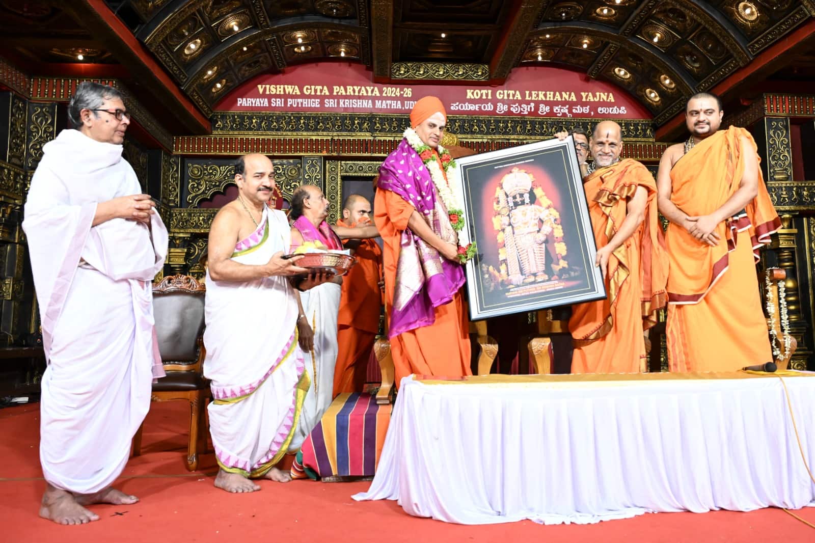 ಸಿದ್ದಗಂಗಾ ಮಠದ ಶ್ರೀ ಶಿವಸಿದ್ದೇಶ್ವರ ಶ್ರೀಗಳು ಸಂತ ಸಂದೇಶ ನೀಡುತ್ತಾ, ಭಗವದ್ಗೀತೆ ಕೇವಲ ಸಂಭಾಷಣೆ- ಪುಸ್ತಕ ಮಾತ್ರವಲ್ಲ. ಡಿವಿಜಿ ಹೇಳುವಂತೆ ಭಗವದ್ಗೀತೆ ಒಂದು ಜೀವನ ದಿಗ್ದರ್ಶನ ಎಂದಿದ್ದಾರೆ. ವೇದ, ಉಪನೀಷತ್ ಗಳಂತೆ ಭಗವದ್ಗೀತೆ ಕೂಡ ಅದೇ ಸಾಲಿಗೆ ಸೇರುತ್ತದೆ ಎಂದರು.ಪುತ್ತಿಗೆ ಮಠದ ಕಿರಿಯ ಶ್ರೀ ಸುಶೀಂದ್ರ ತೀರ್ಥ ಶ್ರೀಪಾದರು ಸಾನಿಧ್ಯ ವಹಿಸಿದ್ದರು, ಪುತ್ತಿಗೆ ಮಠದ ದಿವಾಣರಾದ ನಾಗರಾಜ ಆಚಾರ್ಯ, ಕಾರ್ಯದರ್ಶಿ ಪ್ರಸನ್ನ ಆಚಾರ್ಯ ಉಪಸ್ಥಿತರಿದ್ದರು.