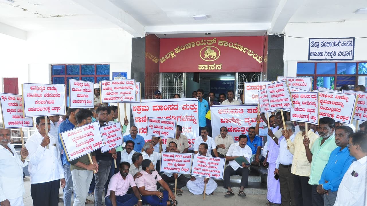 ಅರಸೀಕಟ್ಟೆಯಮ್ಮ ದೇವಸ್ಥಾನದ ಸುತ್ತಮುತ್ತ ಕಾನೂನು ಬಾಹಿರವಾಗಿ ಹಂದಿ, ಕುರಿ, ಕೋಳಿ ಇತರೆ ವಾಣಿಜ್ಯ ಚಟುವಟಿಕೆಗಳು ನಡೆಯುತ್ತಿದ್ದು, ಇದರಿಂದ ಶುಚಿತ್ವಕ್ಕೆ ಧಕ್ಕೆಯಾಗುತ್ತಿದೆ ಎಂದು ಕೂಡಲೇ ಕ್ರಮಕೈಗೊಳ್ಳಬೇಕೆಂದು ಆಗ್ರಹಿಸಿ ಜಿಪಂ ಮುಂದೆ ಮಾಜಿ ಶಾಸಕ ಎ.ಟಿ. ರಾಮಸ್ವಾಮಿ ನೇತೃತ್ವದಲ್ಲಿ ಸೋಮವಾರ ಪ್ರತಿಭಟನೆ ನಡೆಸಲಾಯಿತು.