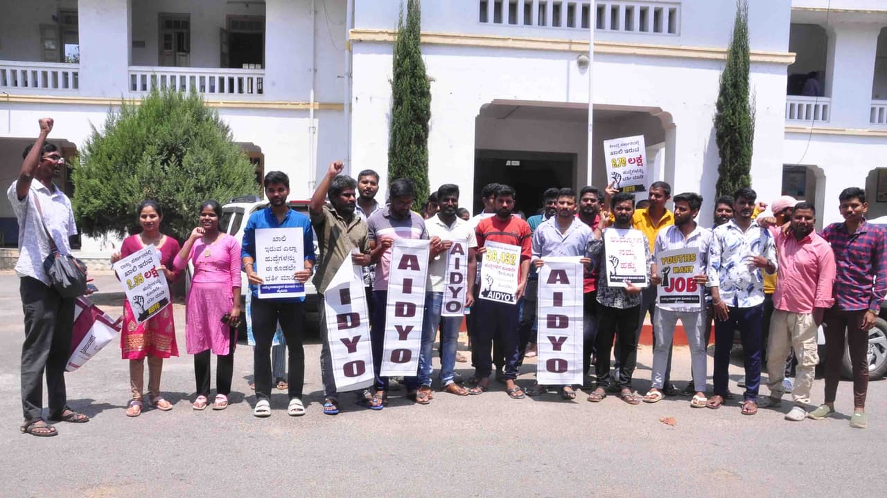 ಕೇಂದ್ರ ಹಾಗೂ ರಾಜ್ಯ ಸರ್ಕಾರದಲ್ಲಿ ಖಾಲಿ ಇರುವ ಹುದ್ದೆಗಳ ಭರ್ತಿ ಹಾಗೂ ನೇಮಕಾತಿಯಲ್ಲಿ ನಡೆಯುವ ಭ್ರಷ್ಟಾಚಾರ ತಡೆಗಟ್ಟಲು ಆಗ್ರಹಿಸಿ ಏಡ್ಸೋ ಸಂಘಟನೆ ವತಿಯಿಂದ ಪ್ರತಿಭಟನೆ ಮಾಡಿ ನಂತರ ಕಳೆದ ನವೆಂಬರ್ ತಿಂಗಳಿಂದ ಫೆಬ್ರವರಿವರೆಗೆ ಹಾಸನದ ಯುವಜನರು, ಉದ್ಯೋಗಾಕಾಂಕ್ಷಿಗಳು ಮತ್ತು ಸಾರ್ವಜನಿಕರಿಂದ ಸಂಗ್ರಹಿಸಿದ ನೂರಾರು ಸಹಿ ಸಂಗ್ರಹಿಸಿದ ಮನವಿ ಪತ್ರವನ್ನು ಜಿಲ್ಲಾಡಳಿತಕ್ಕೆ ಮನವಿ ಸಲ್ಲಿಸಲಾಯಿತು.ಎಐಡಿವೈಒ ಸಂಘಟನೆ ಜಿಲ್ಲಾ ಸಂಚಾಲಕ ಟಿ. ಆರ್. ಸುನಿಲ್ ಮಾಧ್ಯಮದೊಂದಿಗೆ ಮಾತನಾಡಿ, ಕೇಂದ್ರ ಮತ್ತು ರಾಜ್ಯ ಸರ್ಕಾರದ ವಿವಿಧ ಇಲಾಖೆಗಳಲ್ಲಿ ಲಕ್ಷಾಂತರ ಹುದ್ದೆಗಳು ಖಾಲಿ ಇದ್ದರೂ ಅದನ್ನು ತುಂಬಿಕೊಳ್ಳುವ ಪ್ರಕ್ರಿಯ ನಡೆಯುತ್ತಿಲ್ಲ. ಕಳೆದ ಐದಾರು ವರ್ಷಗಳಿಂದ ರಾಜ್ಯದಲ್ಲಿ ಯಾವುದೇ ನೇಮಕಾತಿಗಳಾಗದಿರುವುದು ಉದ್ಯೋಗಾಕಾಂಕ್ಷಿಗಳಲ್ಲಿ ಆಕ್ರೋಶ ಮಡುಗಟ್ಟಿದೆ. ವಿದ್ಯಾರ್ಥಿಗಳು ಪದೇ ಪದೇ ಬೀದಿಗಿಳಿದು ಹೋರಾಟ ನಡೆಸುತ್ತಿದ್ದಾರೆ. ನಿರಂತರ ಹೋರಾಟದ ಪ್ರತಿಫಲವಾಗಿ ಮುಖ್ಯಮಂತ್ರಿಗಳು ಕಳೆದ ಡಿಸೆಂಬರ್ನಲ್ಲಿ ೫೬,೪೩೨ ಹುದ್ದೆಗಳನ್ನು ಭರ್ತಿ ಮಾಡಿಕೊಳ್ಳುವುದಾಗಿ ಮತ್ತು ಬೆಳಗಾವಿ ಅಧಿವೇಶನದಲ್ಲಿ ೨೪,೩೦೦ ಹುದ್ದೆಗಳ ನೇಮಕಾತಿಗೆ ಆರ್ಥಿಕ ಇಲಾಖೆಯಿಂದ ಅನುಮೋದನೆ ದೊರೆತಿದೆ ಎಂದು ಘೋಷಿಸಿದರು. ಆದರೆ ತಿಂಗಳುಗಳು ಕಳೆದರೂ ನೇಮಕಾತಿ ಪ್ರಕ್ರಿಯೆ ಆರಂಭವಾಗಲಿಲ್ಲ. ಈಗ ಮತ್ತೆ ಹೋರಾಟದ ಬಿಸಿ ತಟ್ಟಿದ ಮೇಲೆ ಸಚಿವ ಸಂಪುಟ ಸಭೆಯಲ್ಲಿ ೫೬,೦೦೦ ಹುದ್ದೆಗಳ ನೇಮಕಾತಿಗೆ ಅನುಮೋದನೆ ದೊರೆತಿದೆ ಎಂದು ಸರ್ಕಾರ ಹೇಳುತ್ತಿದೆ. ಆದರೆ ಇದು ಕೇವಲ ಬಾಯಿ ಮಾತಾಗದೇ ಕೂಡಲೇ ನೇಮಕಾತಿ ಅಧಿಸೂಚನೆ ಹೊರಡಿಸಬೇಕೆಂದು ಪ್ರತಿಭಟನೆಯಲ್ಲಿ ಭಾಗವಹಿಸಿದ್ದ ವಿದ್ಯಾರ್ಥಿಗಳು ರಾಜ್ಯಸರ್ಕಾರವನ್ನು ಒತ್ತಾಯಿಸಿದರು. ಅದರ ಜೊತೆಗೆ ಖಾಲಿ ಇರುವ ಎಲ್ಲಾ ೨,೮೪,೮೮೧ ಹುದ್ದೆಗಳನ್ನು ಭರ್ತಿ ಮಾಡಲು ಕ್ರಮ ಕೈಗೊಳ್ಳಬೇಕು. ಭ್ರಷ್ಟಾಚಾರ ತಡೆಗಟ್ಟಬೇಕು. ನೇಮಕಾತಿಯಲ್ಲಿ ಪಾರದರ್ಶಕತೆ ಕಾಪಾಡಬೇಕು, ನೇಮಕಾತಿಯ ವಾರ್ಷಿಕ ಕ್ಯಾಲೆಂಡರ್ ಬಿಡುಗಡೆ ಮಾಡಬೇಕು, ಅರ್ಜಿ ಶುಲ್ಕ ಕಡಿತ ಮಾಡಬೇಕು, ಶಿಕ್ಷಣ ಕ್ಷೇತ್ರದಲ್ಲಿ ಉದ್ಯೋಗಗಳನ್ನು ನಾಶ ಮಾಡುವ ಕೆಪಿಎಸ್ ಮ್ಯಾಗ್ನೆಟ್ ಶಾಲೆ ಯೋಜನೆಯನ್ನು ಕೈ ಬಿಡಬೇಕು ಇತ್ಯಾದಿ ಬೇಡಿಕೆಗಳನ್ನು ಕೂಡಲೇ ಈಡೇರಿಸುವಂತೆ ಆಗ್ರಹಿಸಿದರು.ಶಿಕ್ಷಣ ಇಲಾಖೆಯಲ್ಲಿಯೇ ಸುಮಾರು ೫೮ ಸಾವಿರಕ್ಕೂ ಹೆಚ್ಚು ಶಿಕ್ಷಕರ ಹುದ್ದೆಗಳು ಖಾಲಿ ಇವೆ. ಚಿತ್ರಕಲೆ, ಸಂಗೀತ ಹಾಗೂ ದೈಹಿಕ ಶಿಕ್ಷಣದಂತಹ ವಿಶೇಷ ಶಿಕ್ಷಕರ ಕೊರತೆಯೂ ಹೆಚ್ಚಾಗಿದೆ. ಇದರಿಂದ ಸರ್ಕಾರಿ ಶಾಲೆಗಳ ಶಿಕ್ಷಣದ ಗುಣಮಟ್ಟ ಕುಸಿಯುತ್ತಿದೆ. ಇದೇ ಸಂದರ್ಭದಲ್ಲಿ ಕೆಪಿಎಸ್ ಮ್ಯಾಗ್ನೆಟ್ ಶಾಲೆಗಳ ಹೆಸರಿನಲ್ಲಿ ವಿದ್ಯಾರ್ಥಿಗಳ ಸಂಖ್ಯೆ ಕಡಿಮೆ ಎಂಬ ಕಾರಣ ನೀಡಿ ಹಳ್ಳಿಗಳ ಶಾಲೆಗಳನ್ನು ವಿಲೀನಗೊಳಿಸುವ ಕ್ರಮ ಕೈಗೊಳ್ಳಲಾಗುತ್ತಿದೆ. ಇದರಿಂದ ಬಡ ಹಾಗೂ ಹಿಂದುಳಿದ ಕುಟುಂಬಗಳ ಮಕ್ಕಳ ಶಿಕ್ಷಣದ ಹಕ್ಕಿಗೆ ಧಕ್ಕೆ ಉಂಟಾಗುವುದರ ಜೊತೆಗೆ ಶಿಕ್ಷಕರ ಹುದ್ದೆಗಳೂ ಕಡಿಮೆಯಾಗುವ ಸಾಧ್ಯತೆ ಇದೆ ಎಂದು ಆತಂಕ ವ್ಯಕ್ತಪಡಿಸಿದರು.ಇನ್ನು ನೇಮಕಾತಿ ಪ್ರಕ್ರಿಯೆಯಲ್ಲಿ ದುಬಾರಿ ಅರ್ಜಿ ಶುಲ್ಕ ವಿಧಿಸುವುದು ನಿರುದ್ಯೋಗಿ ಯುವಕರಿಗೆ ಮತ್ತೊಂದು ಭಾರವಾಗಿದೆ. ಒಂದಕ್ಕಿಂತ ಹೆಚ್ಚು ಇಲಾಖೆಗಳ ನೇಮಕಾತಿಗೆ ಅರ್ಜಿ ಹಾಕಲು ಸಾವಿರಾರು ರುಪಾಯಿ ಶುಲ