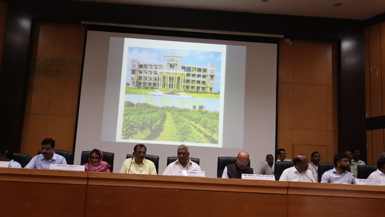 ಪೊಟೋ೧೦ಸಿಪಿಟಿ೮:ರಾಮನಗರದ ಜಿಲ್ಲಾ ಪಂಚಾಯಿತಿ ಕಚೇರಿ ಆವರಣದಲ್ಲಿ ರೇಷ್ಮೆ ಹಾಗೂ ಪಶುಸಂಗೋಪನೆ ಸಚಿವ ಕೆ. ವೆಂಕಟೇಶ್ ಅಧ್ಯಕ್ಷತೆಯಲ್ಲಿ ಜಿಲ್ಲೆಯ ರೇಷ್ಮೆ ಬೆಳೆ ಕುರಿತು ಶಾಸಕರು, ಅಧಿಕಾರಿಗಳು ರೈತರು ಮತ್ತು ರೀಲರ್ಸ್ಗಳ ಸಂವಾದ ಕಾರ್ಯಕ್ರಮ ನಡೆಯಿತು.