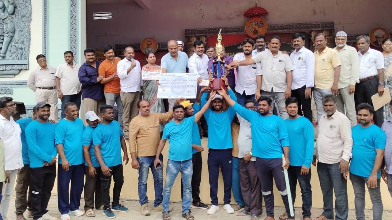 ಭದ್ರಾವತಿ ಹಳೇನಗರದ ಕನಕಮಂಟಪ ಮೈದಾನದಲ್ಲಿ ಹಮ್ಮಿಕೊಳ್ಳಲಾಗಿದ್ದ ಕ್ರಿಕೆಟ್ ಪಂದ್ಯಾವಳಿಯಲ್ಲಿ ಮೊದಲ ಬಹುಮಾನ ಪಡೆದುಕೊಂಡ ಸರ್.ವಿರ್ಜಾ ಇಸ್ಮಾಯಿಲ್ ಕಟ್ಟಡ ಕಾರ್ಮಿಕರ ಸಂಘದ ತಂಡಕ್ಕೆ ನಗರಸಭೆ ಅಧ್ಯಕ್ಷ ಎಂ.ಮಣಿ ಎಎನ್ಎಸ್ ಬಹುಮಾನಗಳನ್ನು ವಿತರಿಸಿದರು.